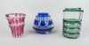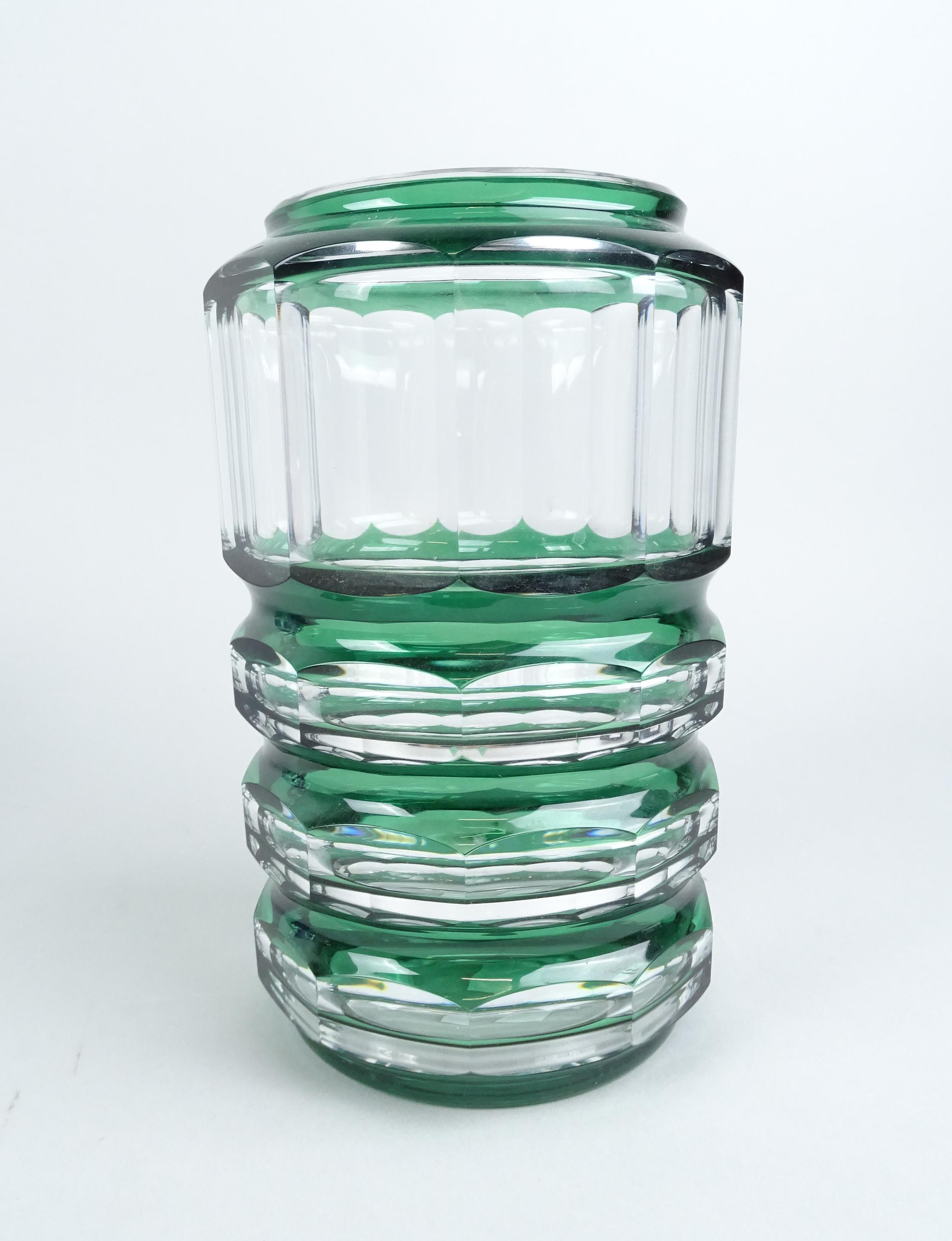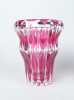 Verrerie: Vase en cristal taillé Val saint Lambert (égrenures sur le bleu) (3) H: 15 / 15 / 18cm