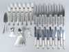 Ménagère OKA en argent 2e titre A835 (12 cout, 12 fourch, 12cuill, 12 cout HO, 12 cuill à moka, pelle à tarte) (1kg800 +cout 1Kg600)