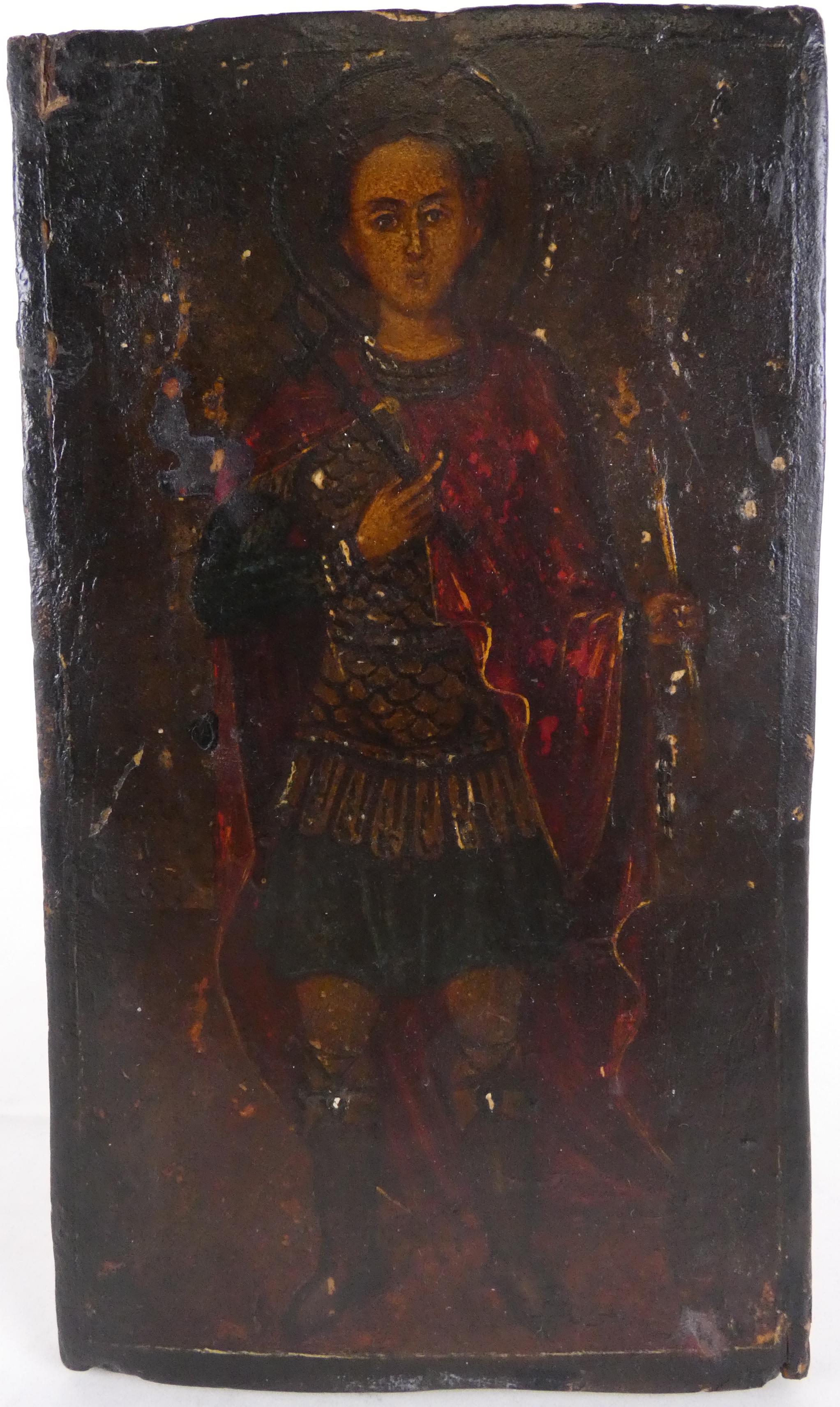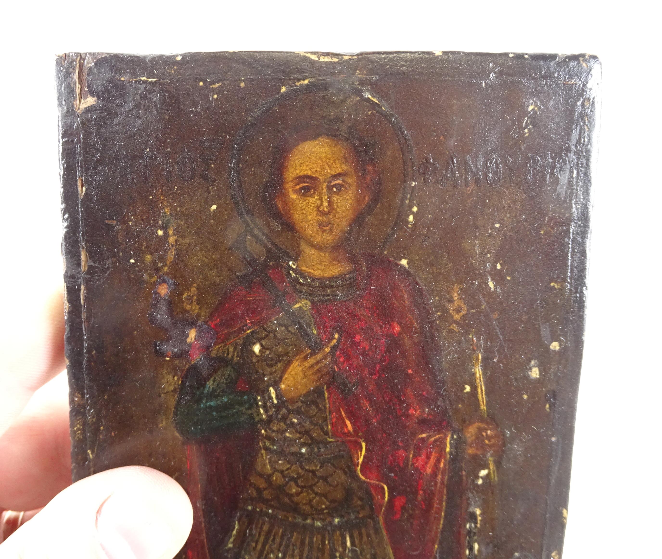 Tableau tempera sur bois icône grecque -Saint George- OATIOE 18eS 20x11,5cm