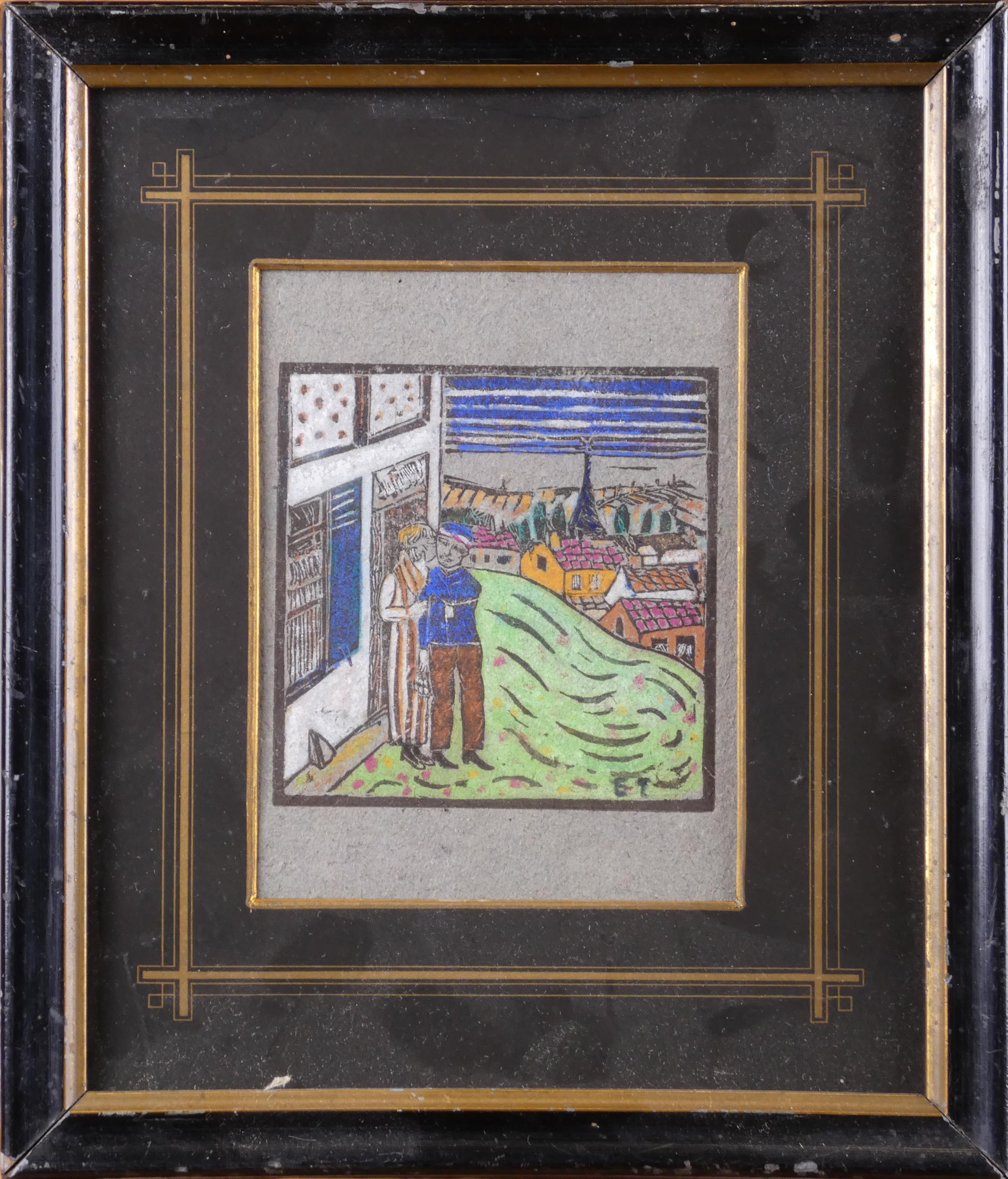 Estampe: Litho rehaussée -couple- monogrammé ET *TYTGAT E.* (Edgard) (1879, 1957) 10x10cm cadre noir sous verre