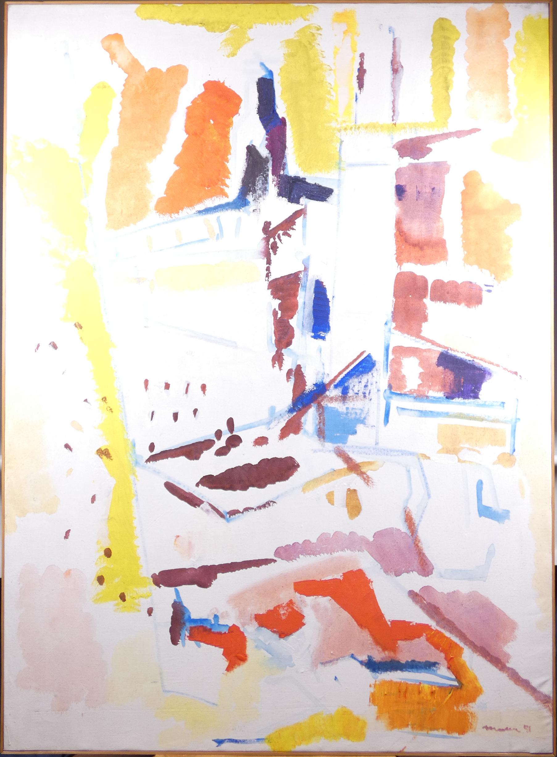 Tableau Acrylique sur toile -Plaza 77- daté 91 signé 156x113 cadre bois