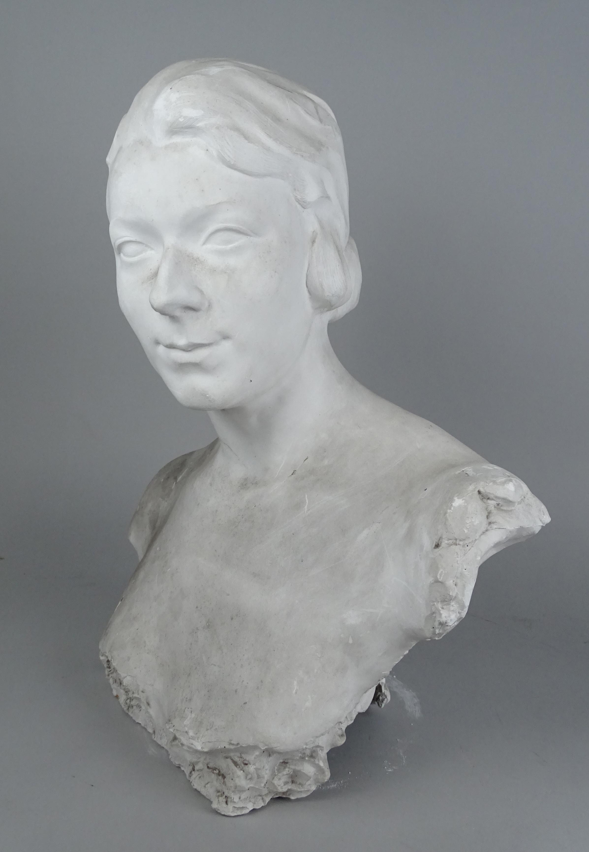 Sculpture: Buste de femme en plâtre d'atelier (usure, ecl) signé *COLLET M.* (Marcel) (1894, 1944) H:52,5cm