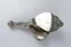 Objet: Conque Tibétaine coquillage avec monture en métal argenté décor de têtes et d'animaux L:27cm