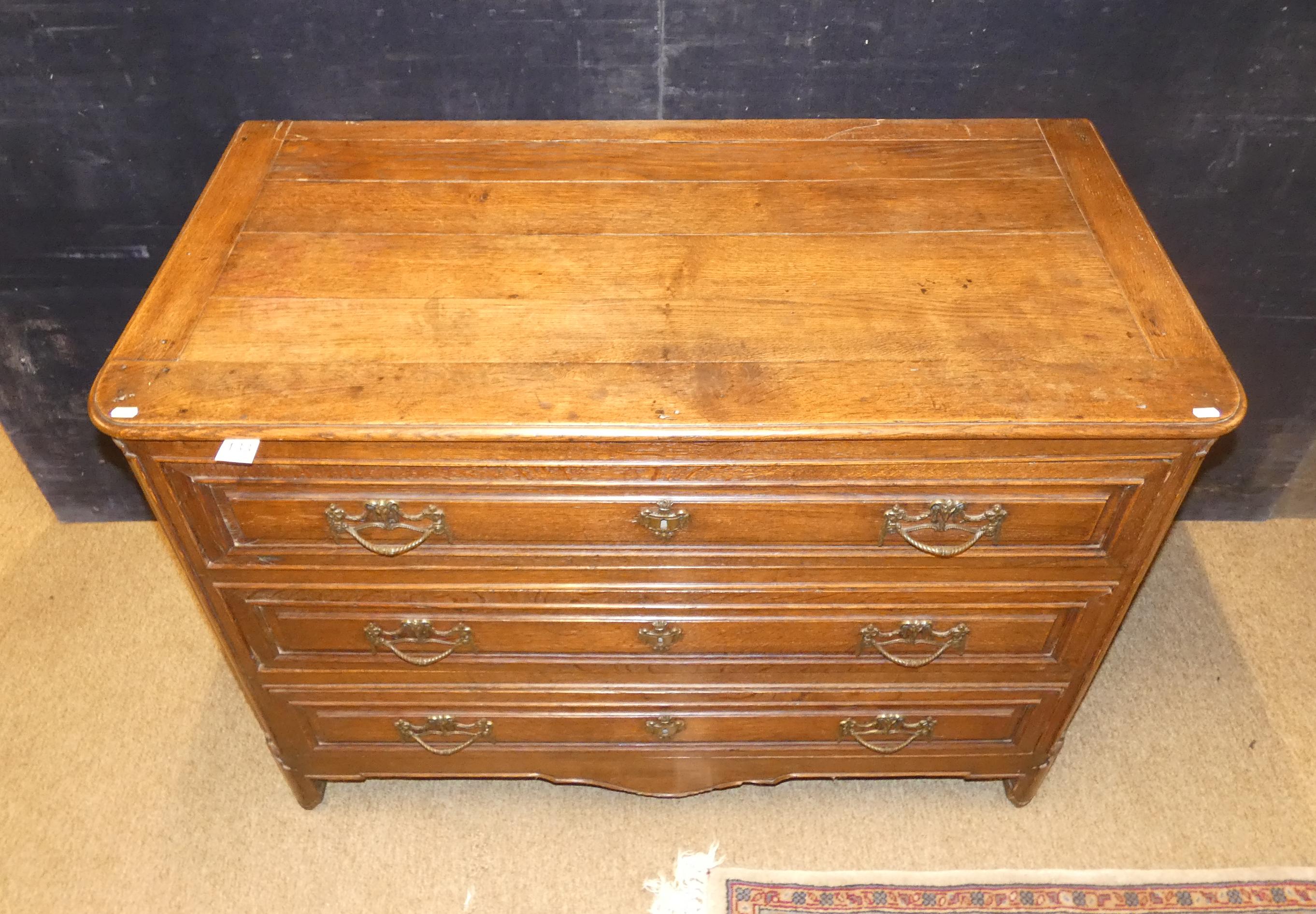 Meuble: Commode en chêne de style Louis XVI fin 18eS début 19eS 3 tiroirs H:93x125x62cm