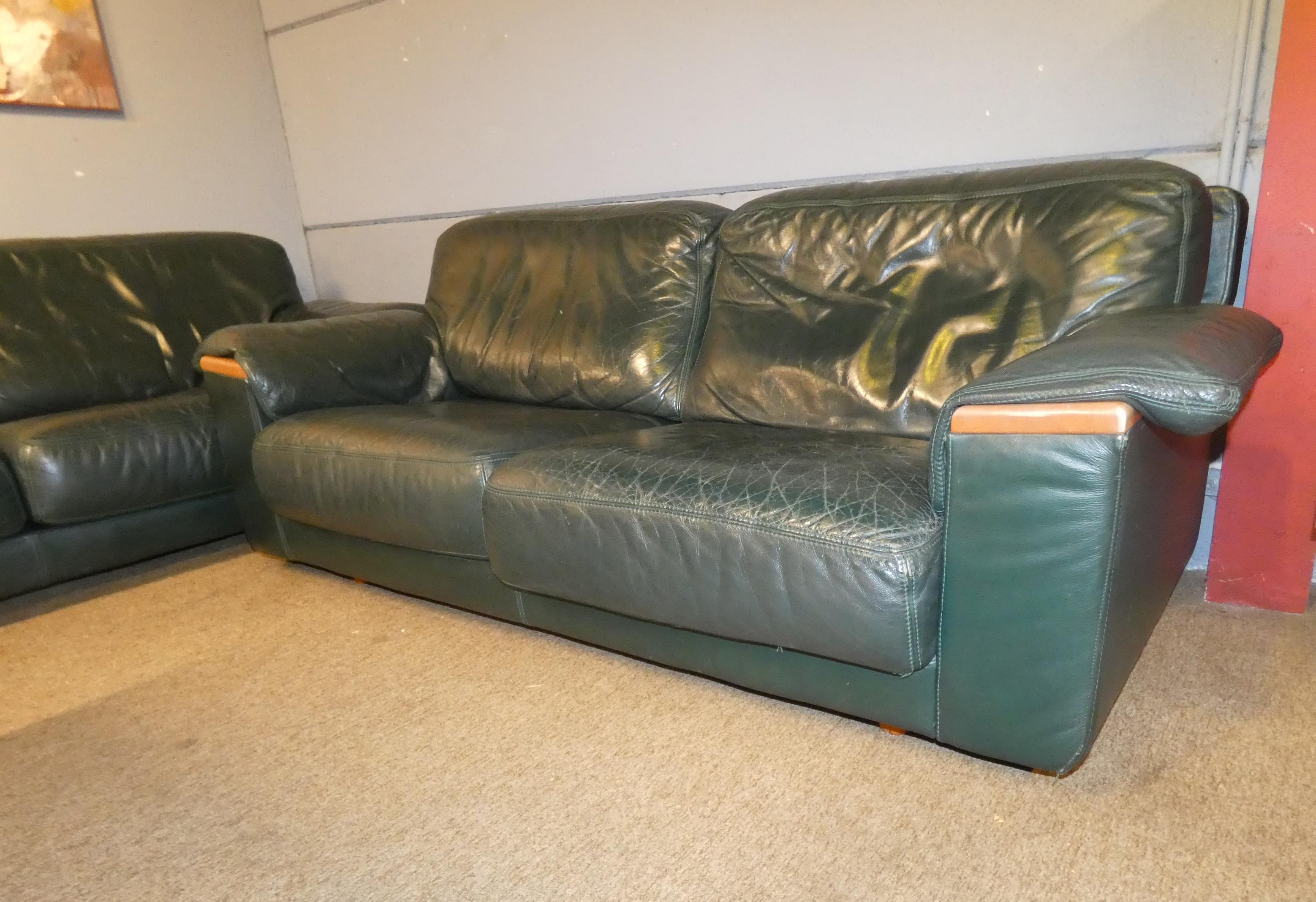 Meuble: Canapés en cuir (usures d'usages) éd CINNA design HIERONIMUS ANNIE (20e, 21eS) modèle MAXIME (2pcs): canapé 3 places 73x210x90cm + canapé 2 places