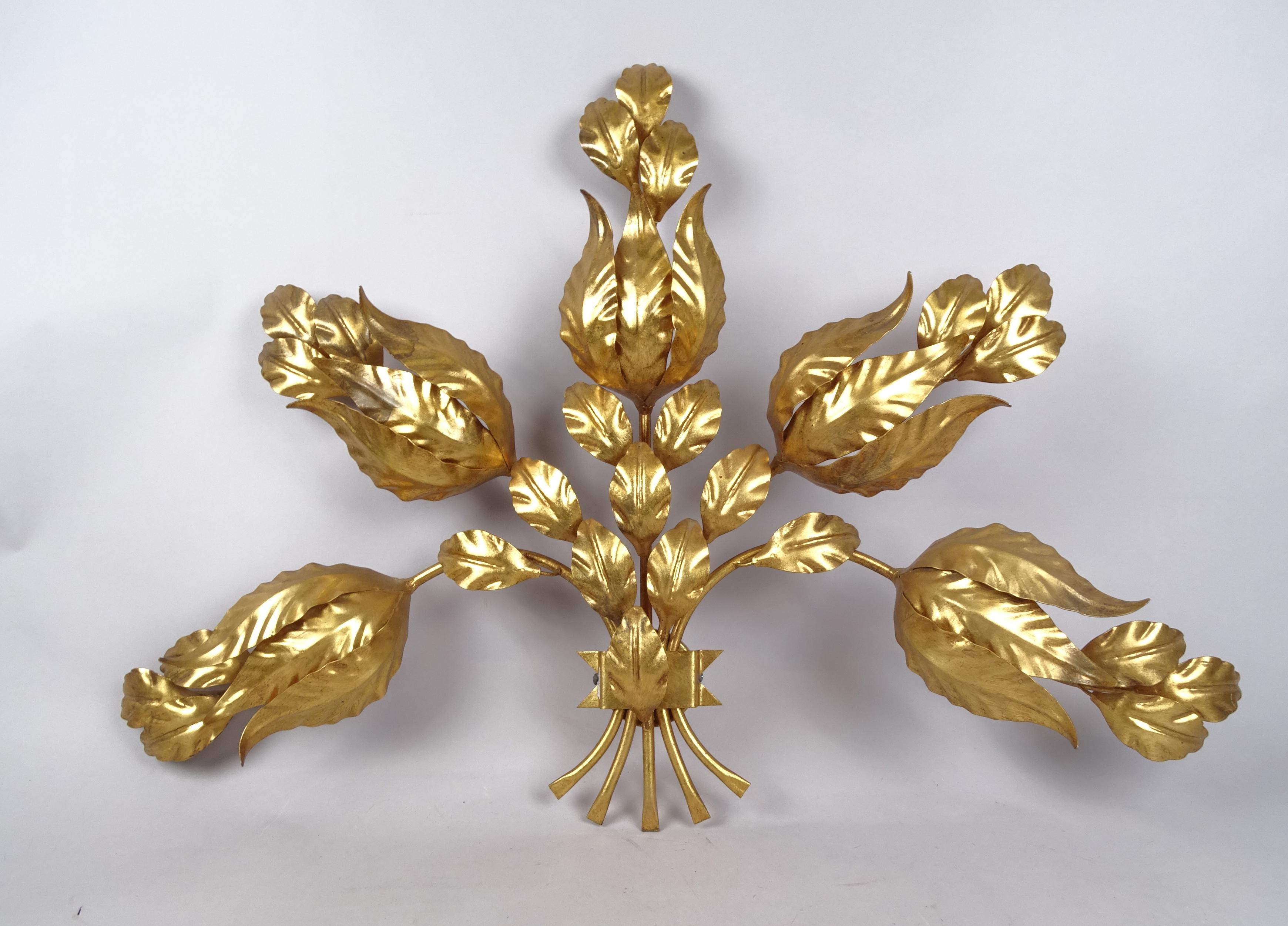 Luminaire: Applique en métal doré attribué à *KOGL H.* (Hans) (XX, XIX) 5 bras de lumières branchages dont feuilles dissimulent la lumière 66x91,5cm