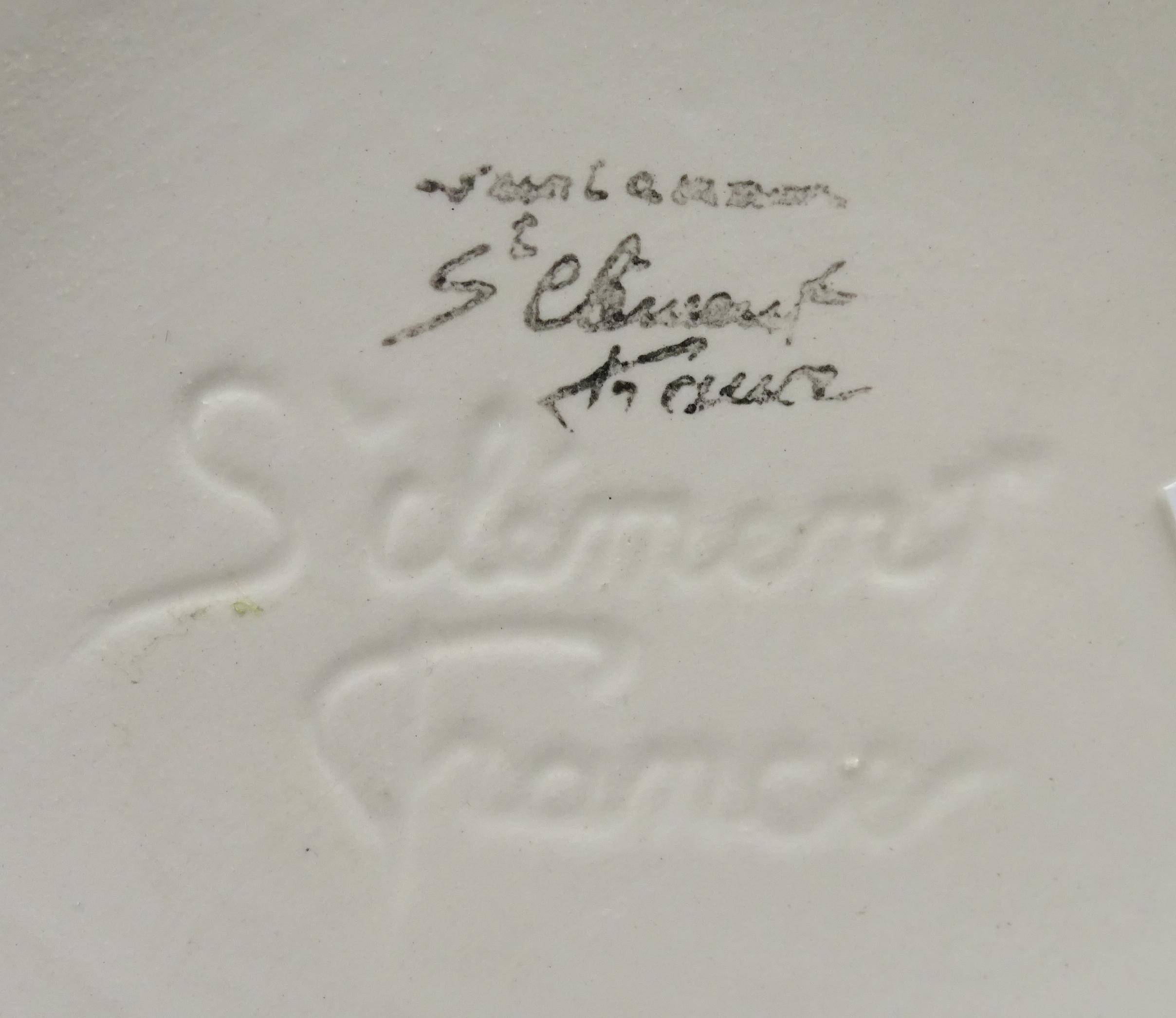 Ceramique: pichet en faience (3): Saint Clément(2): Eléphant H29cm et Marabout (cigogne) H33cm+ Orchies -Cochon au jambon- (egr) H23cm (3pcs)
