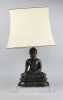 Luminaire : Bouddha assis en bronze monté en lampe sur socle en plexiglas