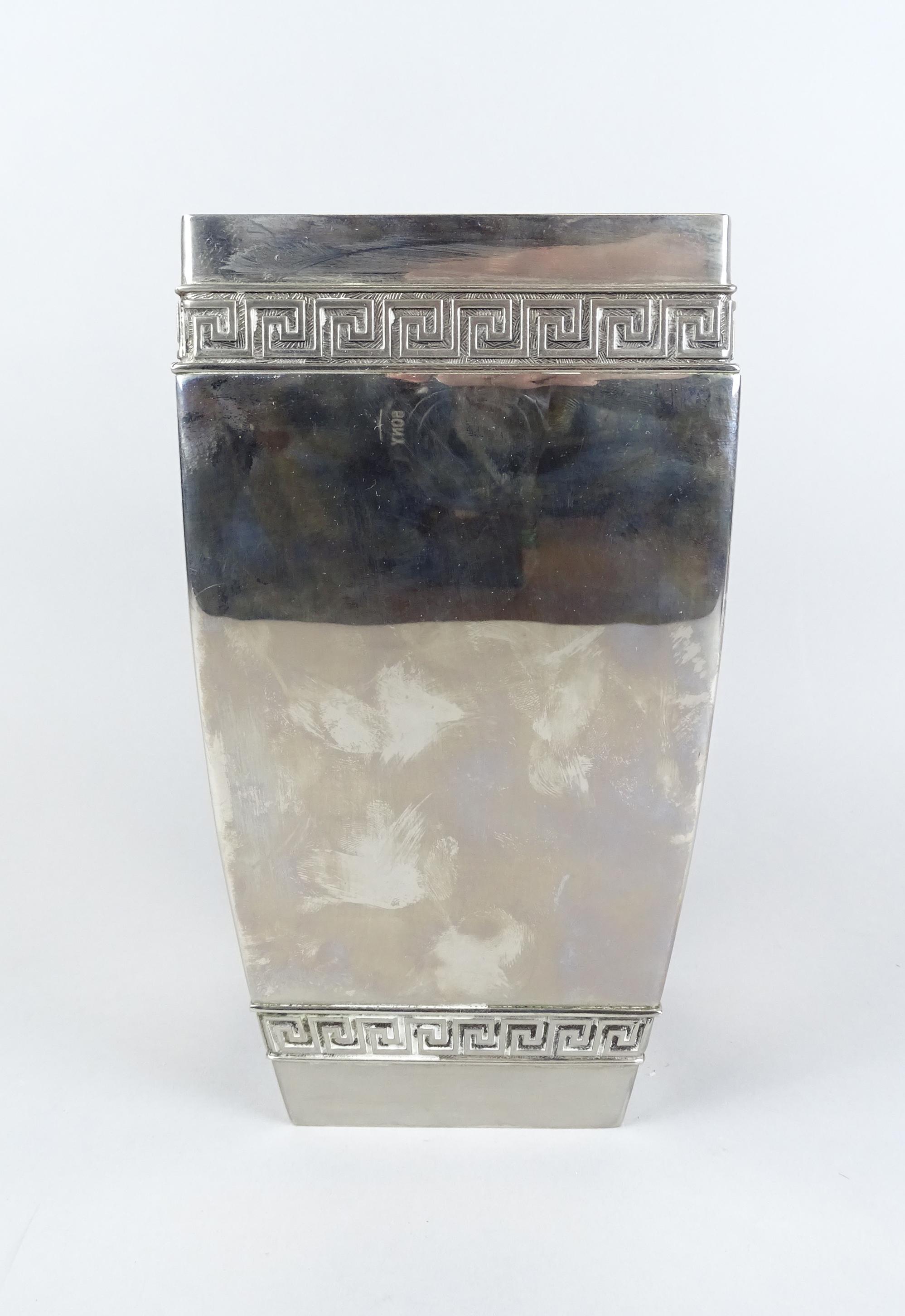 Argenterie: Vase en métal argenté frise à la Grecque H:24x13x13cm