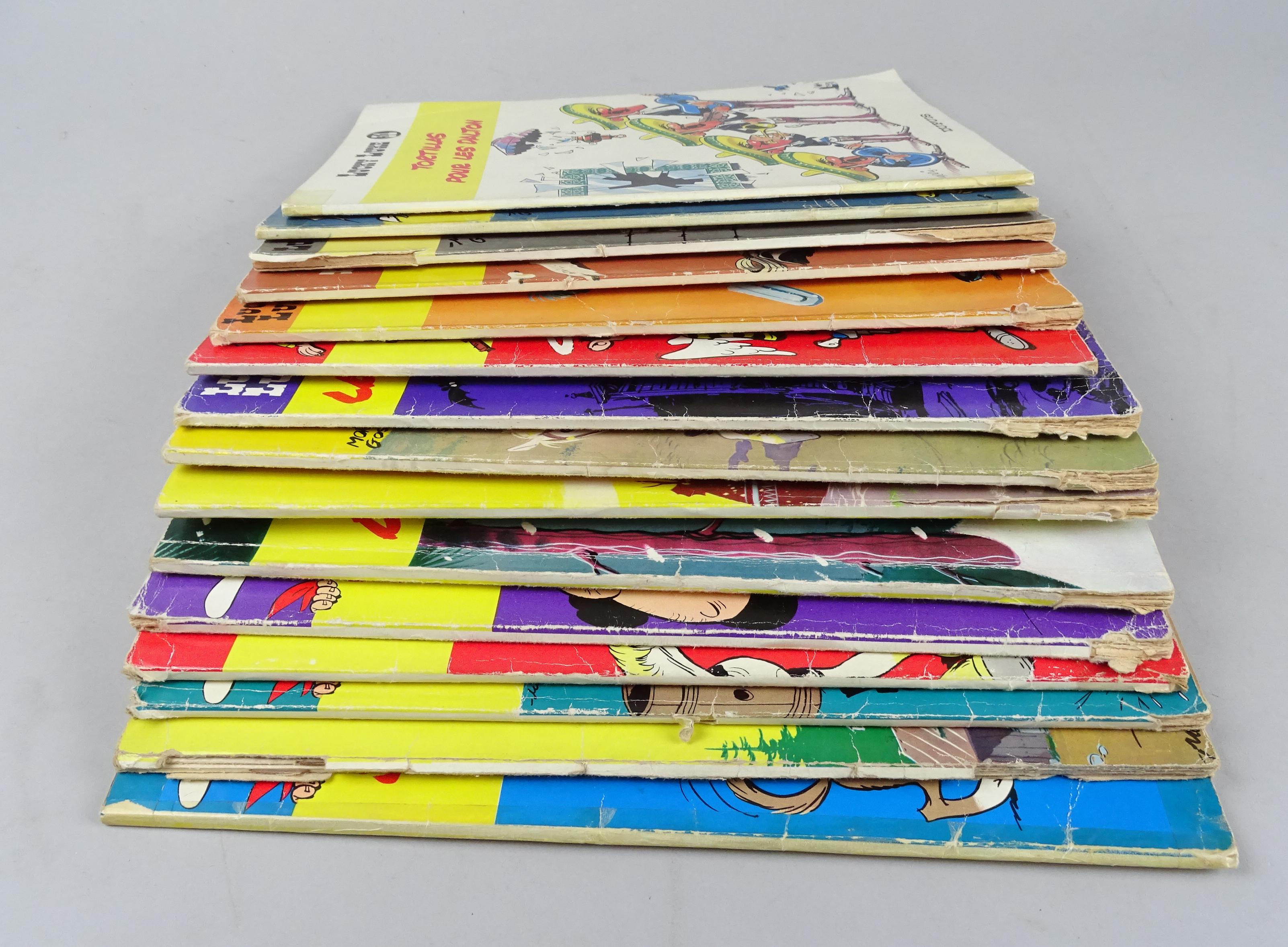 BD: Lucky Luke, Morris éd Dupuis suite des N° 17 à 31 en EO (état moyen à ds l'état, int frais) dont: La Piste des Dalton 62, Billy the kid 62, Les Rivaux 62.. (BDM25:4170_)