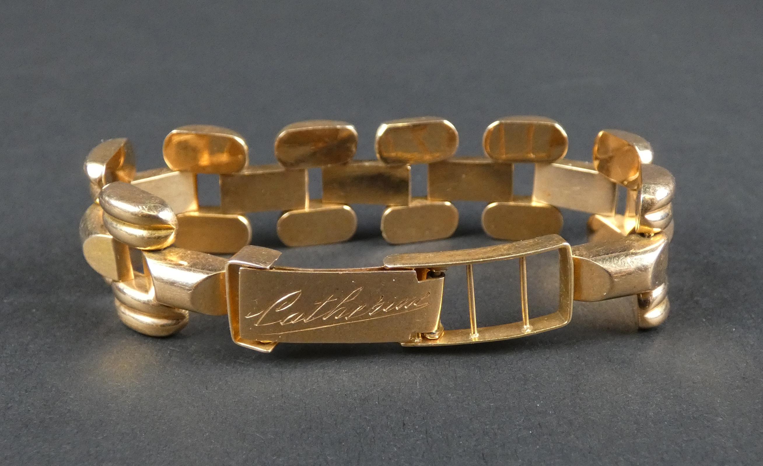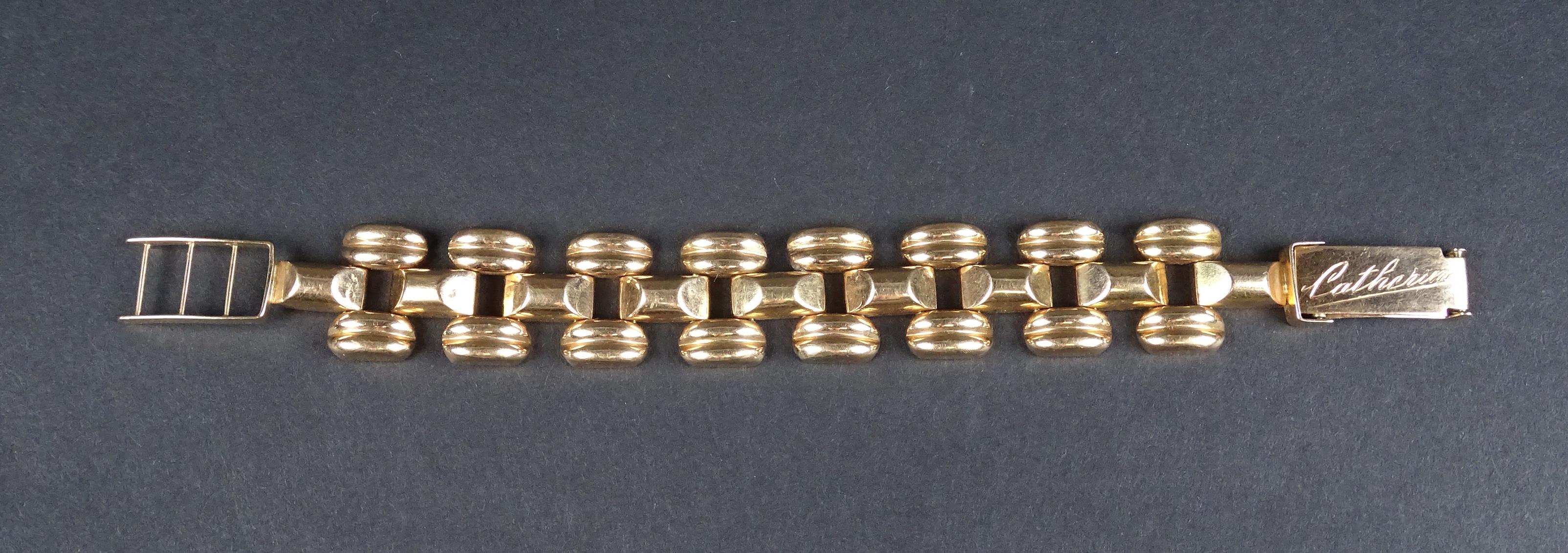 Bijou: Bracelet en or jaune 18K avec attache gravée -Catherine- P: 17,5g L: 16cm