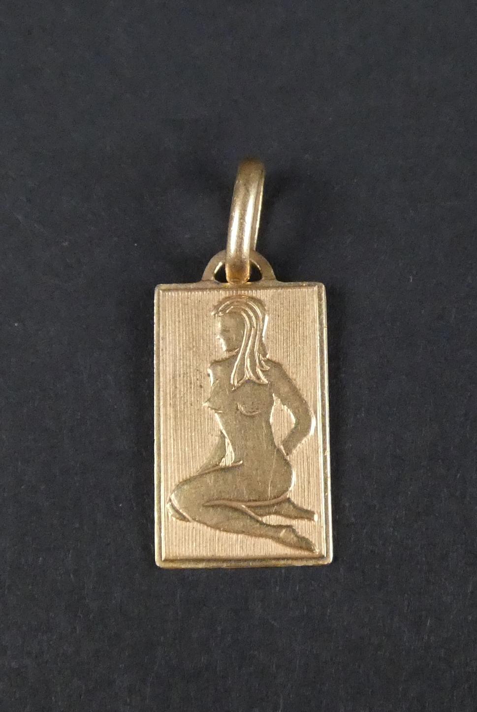 Bijou: Pendentif rectangulaire et son maillon en or jaune 18K -Femme nue- L:2,7cm P:2,1g