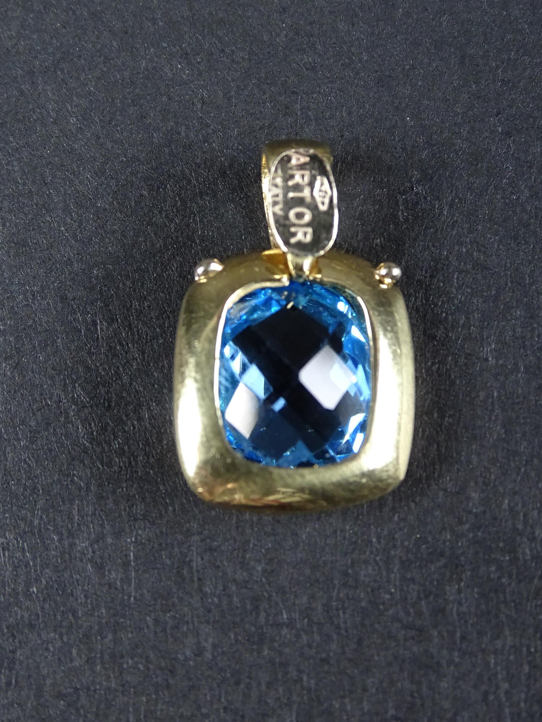 Bijou: Pendentif en or jaune 18K serti d'une pierre bleue P: 2,9g