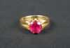 Bijou : Bague en or jaune 18K sertie d'un rubis probablement synthétique
