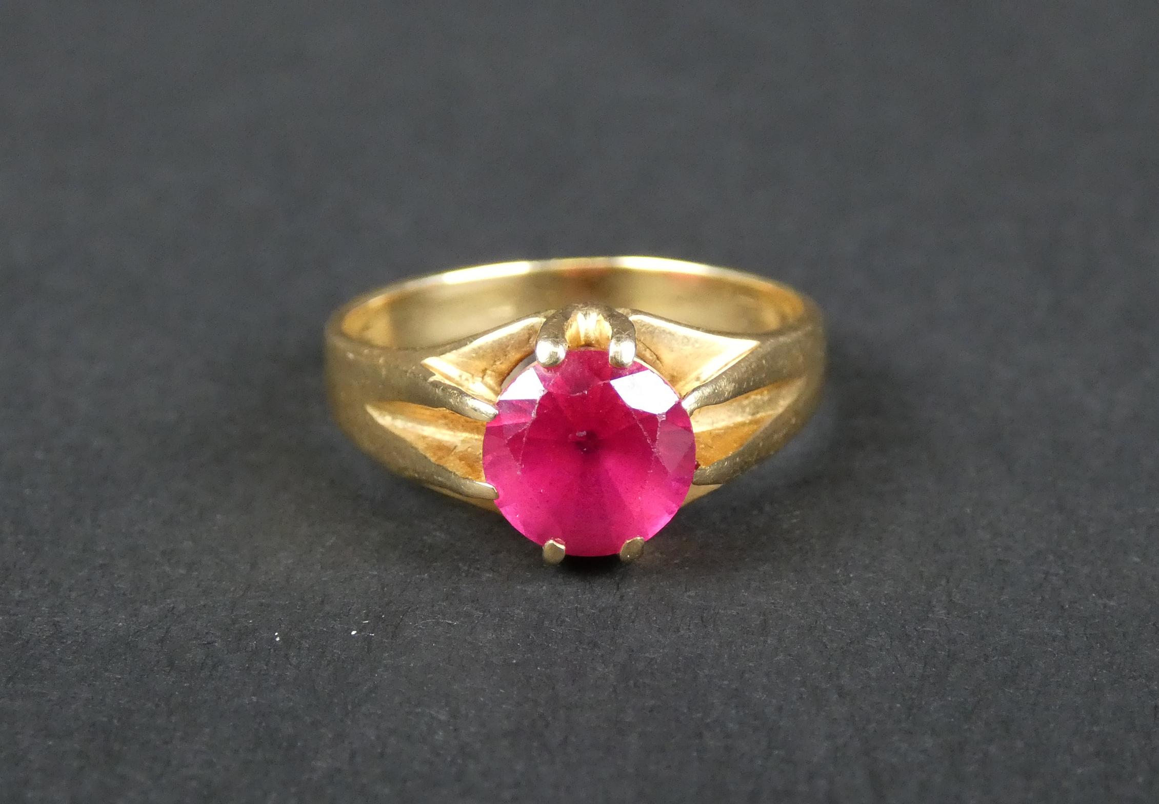 Bijou: Bague en or jaune 18K sertie d'un rubis probablement synthétique P: 4,7g TDD: 56