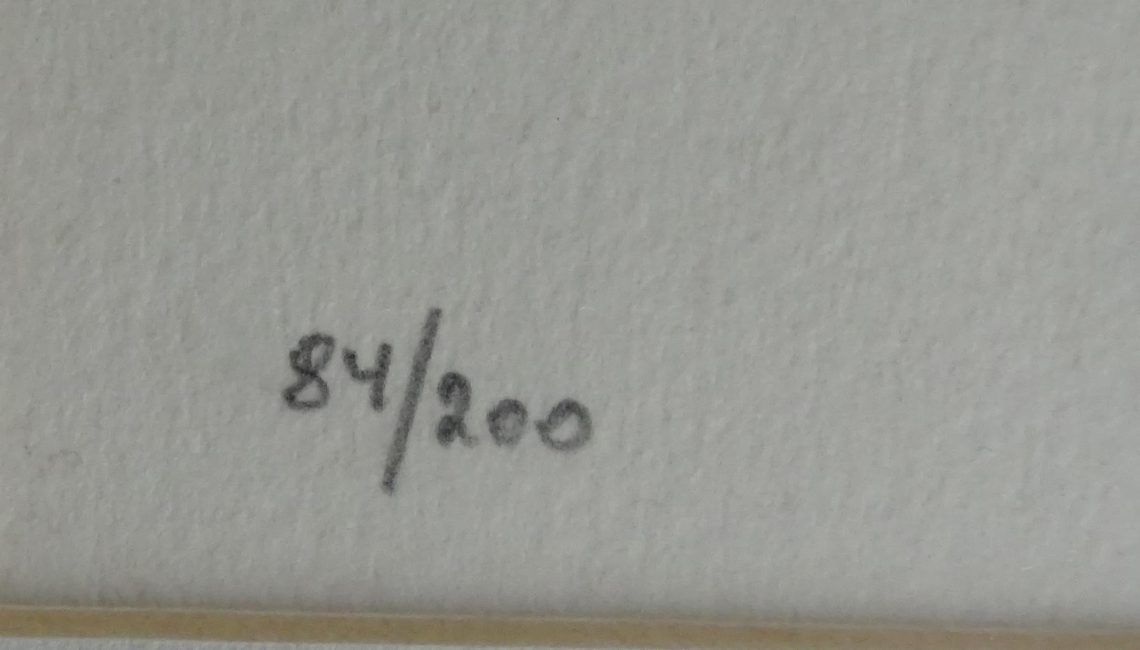 Estampe: Lithographie couleur -Femme au chat- daté 80 N°84/200 signé *MARA P.* (Pol) (1820, 1998) dédicacé 36x52cm cadre moderne sous plexiglas