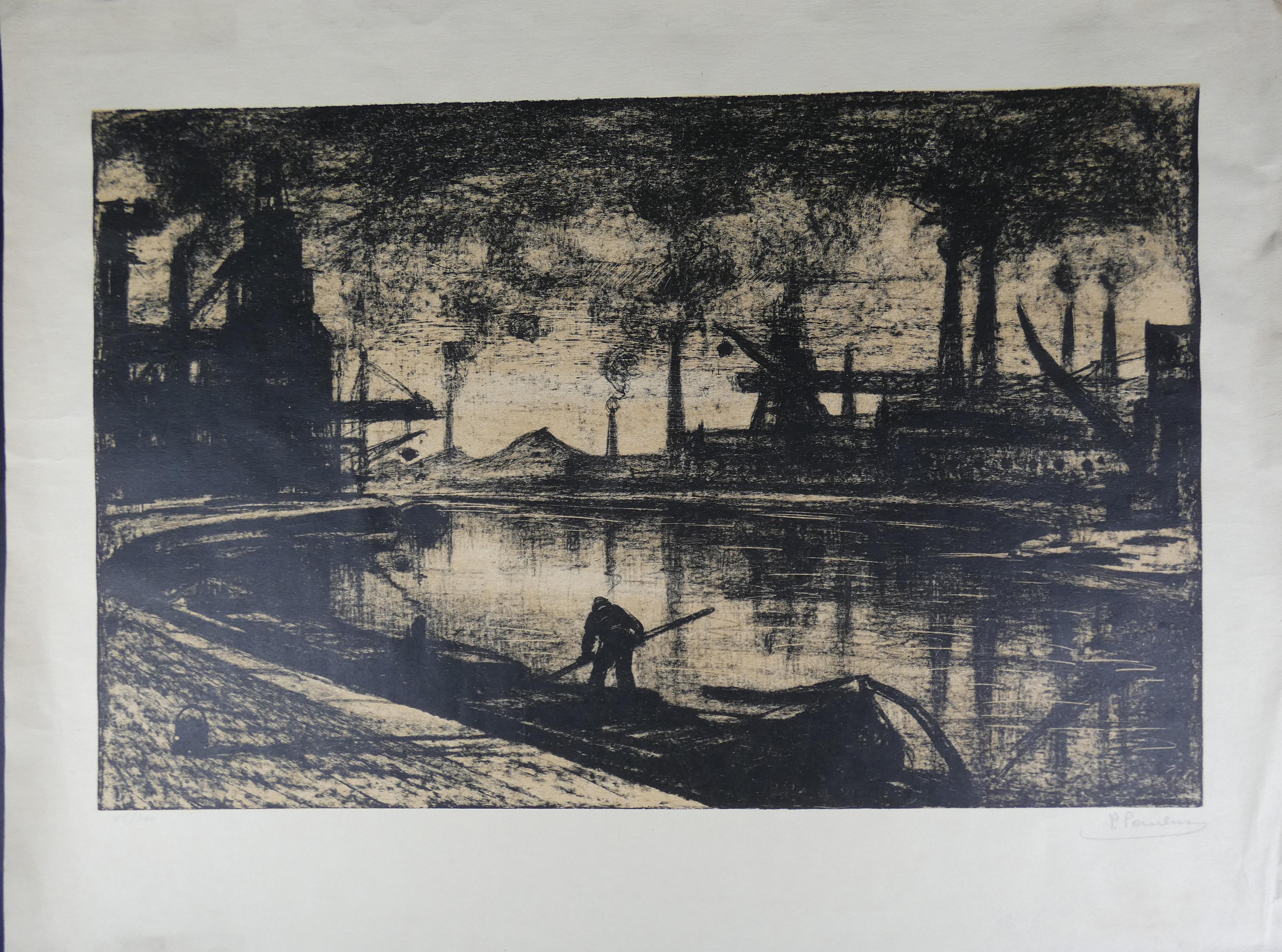 Estampe: Lithographie -Paysage industriel animé- N° 45/300 signé *PAULUS P.* (Pierre) (1881, 1959) 57x36,6cm sans cadre