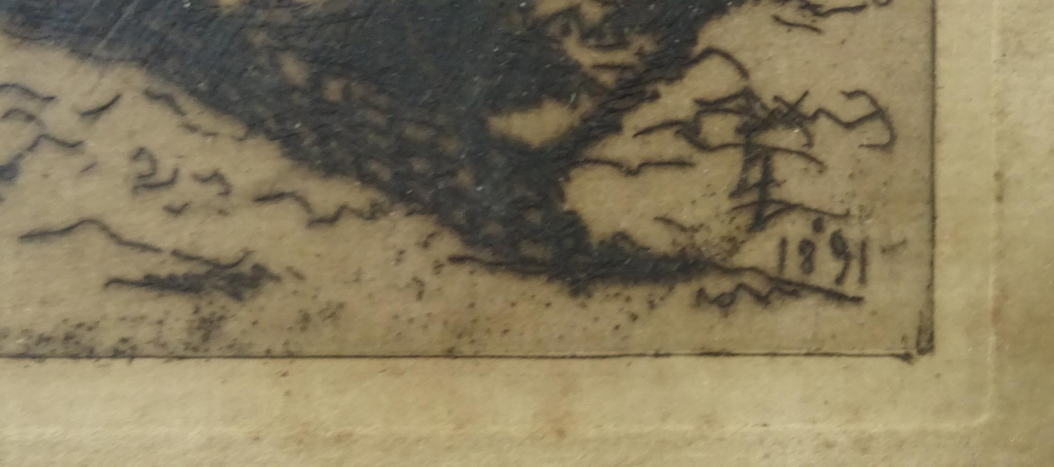 Estampe: Eau-forte -sur le champ- monogrammé daté 1891 dans la planche *LAERMANS E.* (Eugène) (1864, 1940) 23x17cm cadre doré sous verre