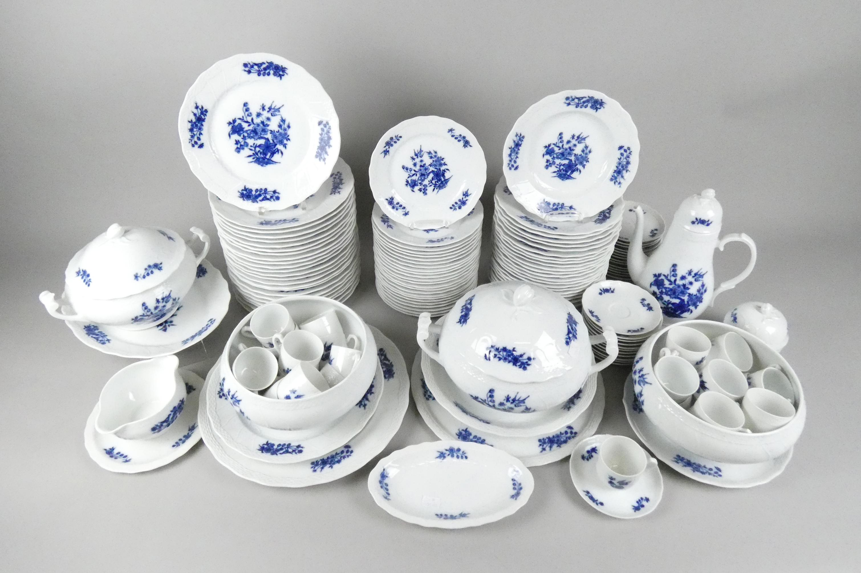 Céramique: partie de service à dîner et à café en porcelaine Cérabel Baudour décor à la mouche et l'oiseau (+/-85pcs) dont 24 ass pl/ cr/ HO, soup, lég, 2 sal, 25T s/t.