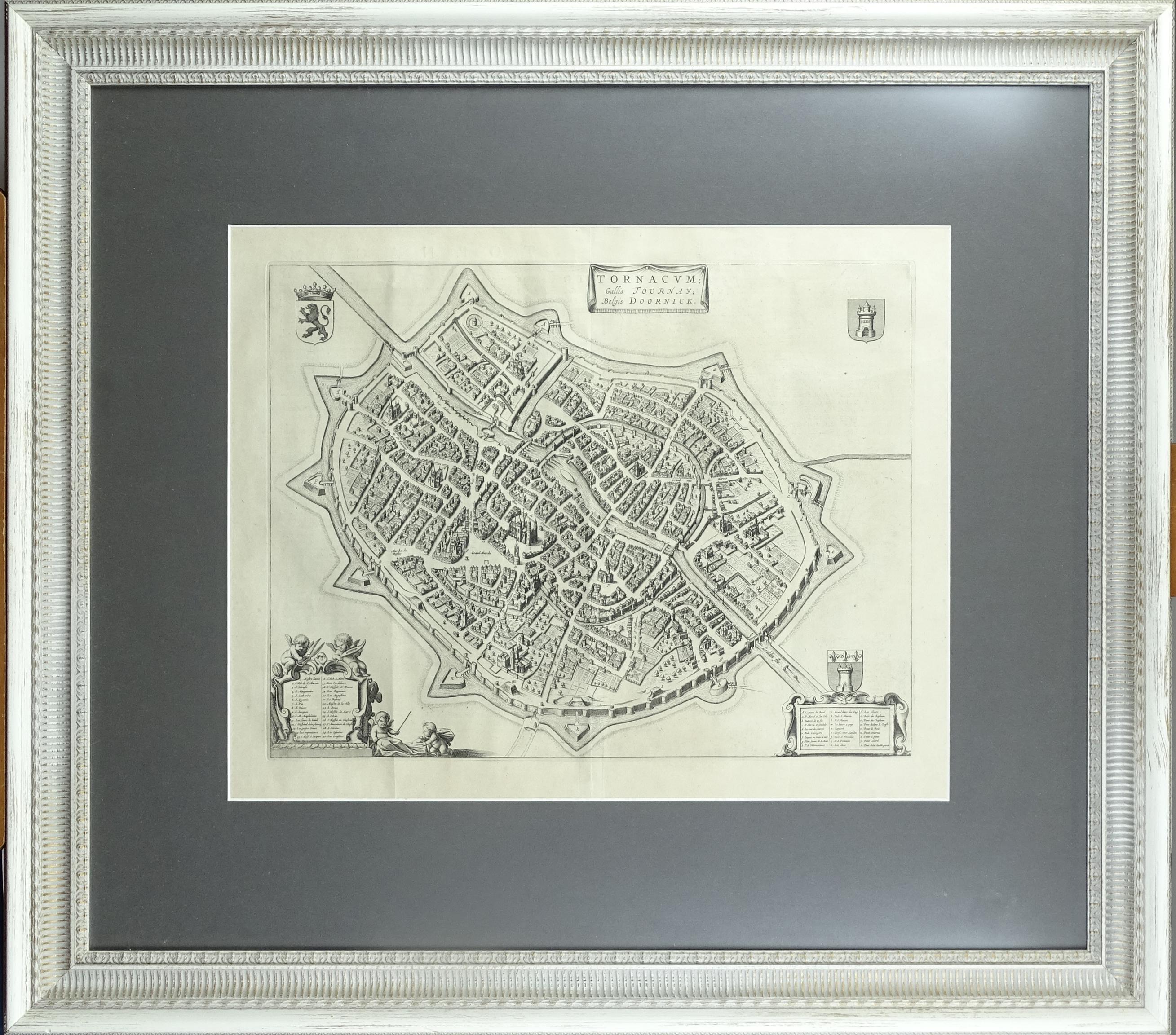 Estampe: gravure Johannes BLAEU - Tornacum; Gallis Tournay; Belgis Doornick. Probablement 17eS 39x51cm cadre patiné s/v