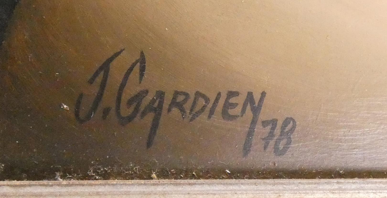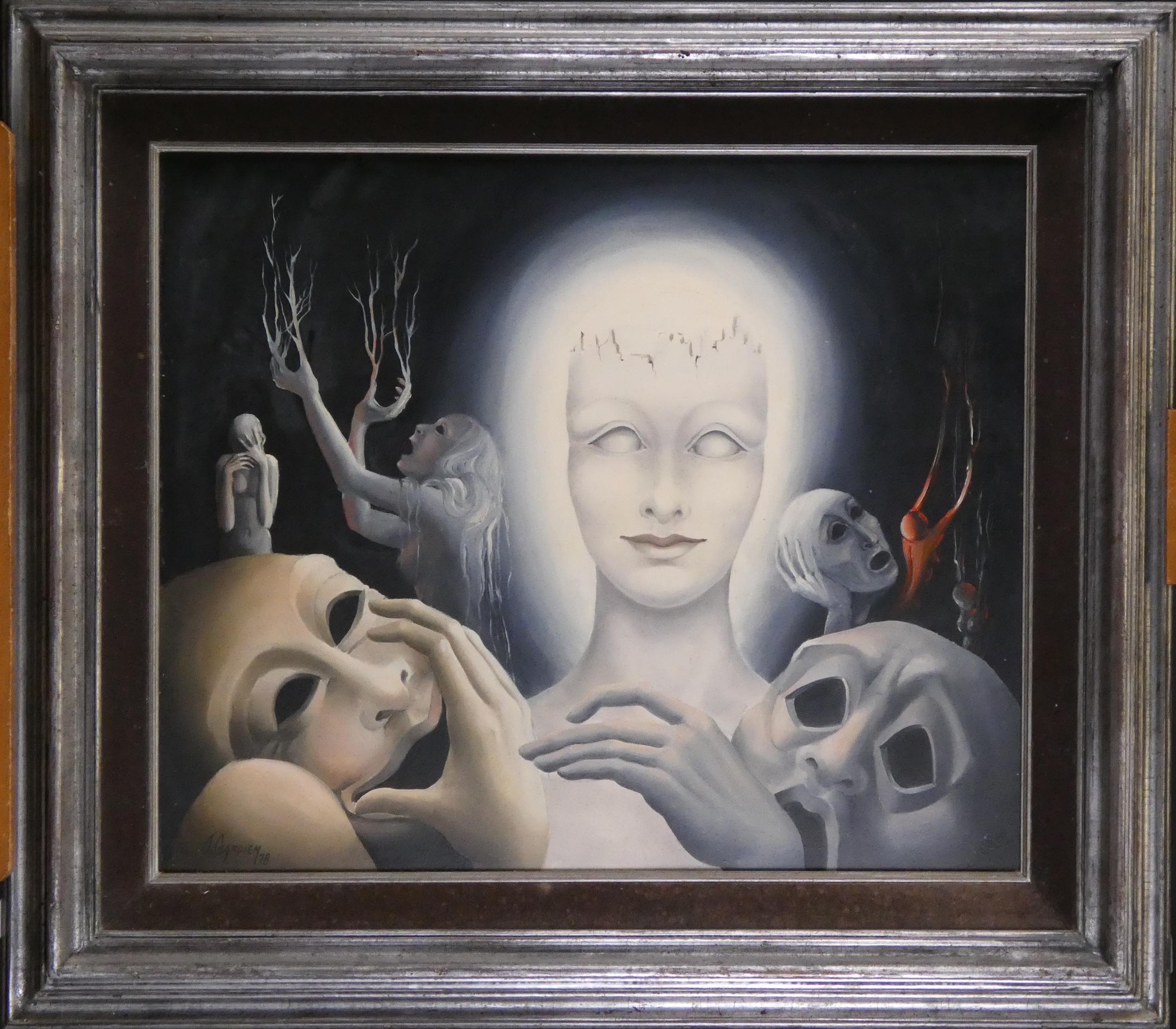 Tableau HSP -Lumière dans les ténèbres- daté 78 signé *GARDIEN J.* (Josiane) (Charleroi 1946, ) 50x60cm cadre patiné