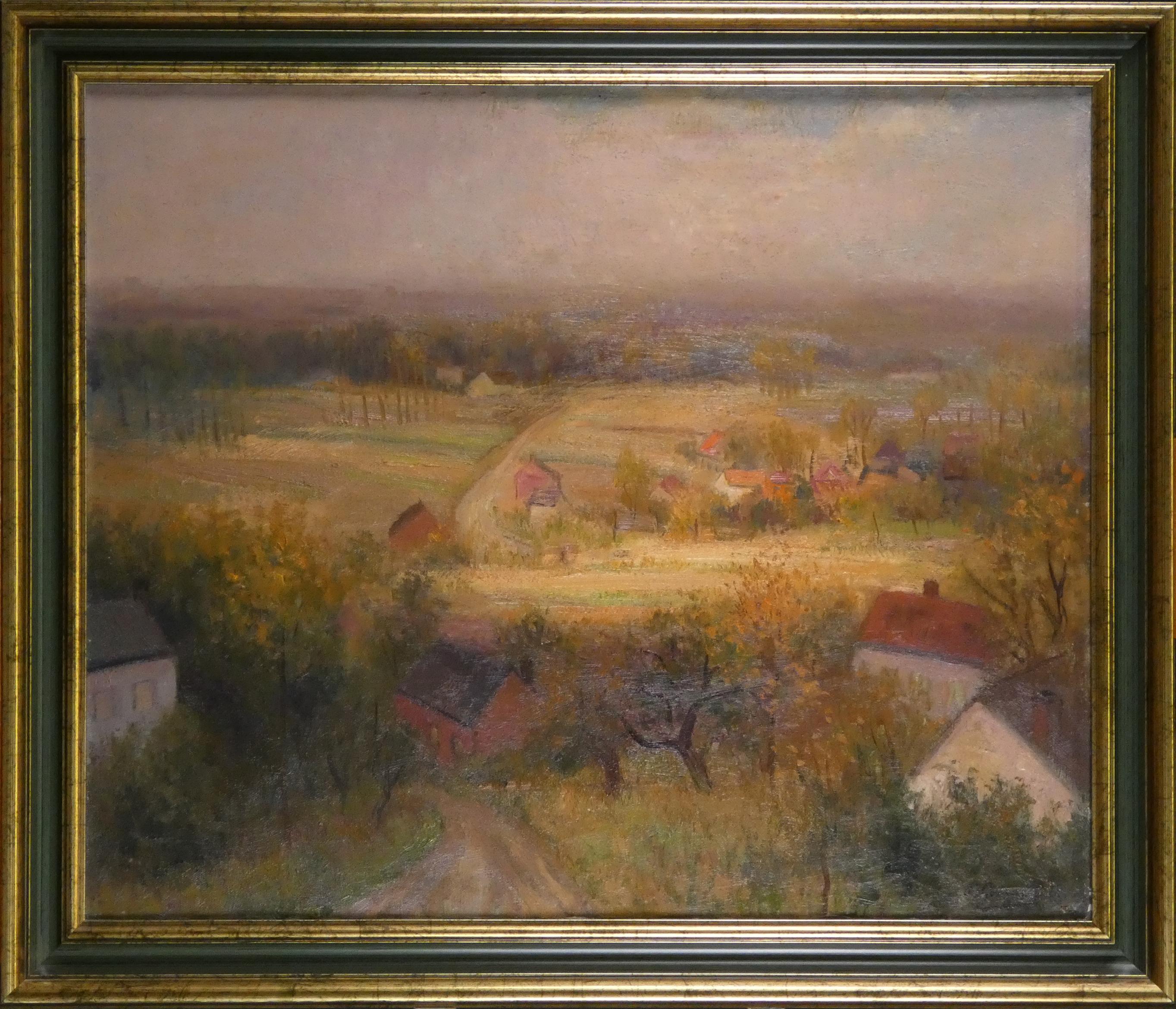 Tableau HST (pt acc) -Vue de village- signé *GOMMAERTS F.* (Fernand) (1894,1975) 50x60cm cadre moderne