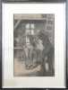 Tableau: dessin sur papier (pt déchirure) -2 hommes- signé au dos *BAUER M.* (Marius) (1867, 1932) 49x32cm cadre sous verre