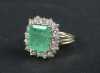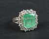 Bijou : Bague en or blanc 18K sertie d'une émeraude (fêle) entourée de diamants
