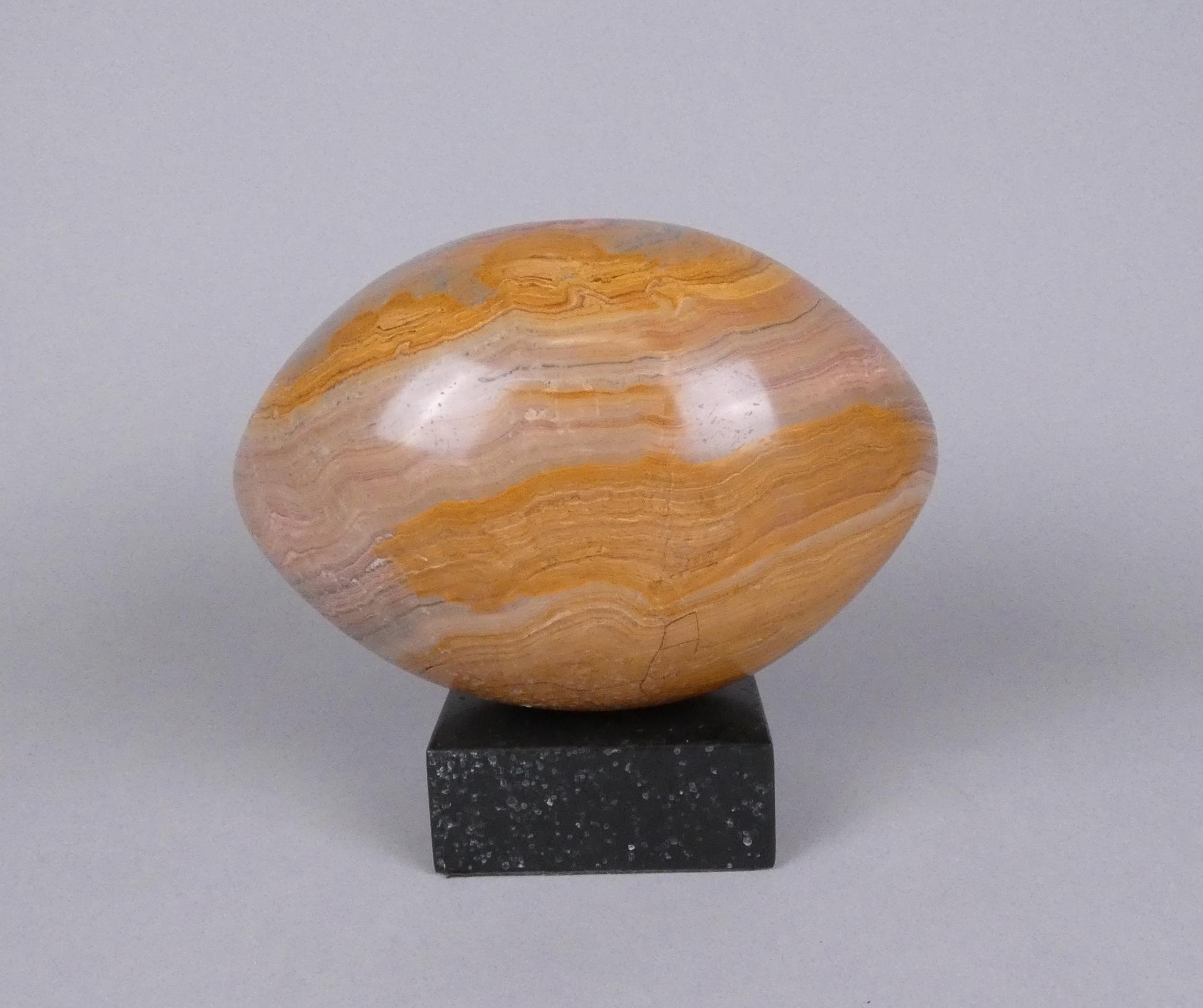 Sculpture: Onyx de forme ovale sur socle noir attribué à *GUILMOT J.* (Jacques) (1927, ?) L:22cm H:19cm