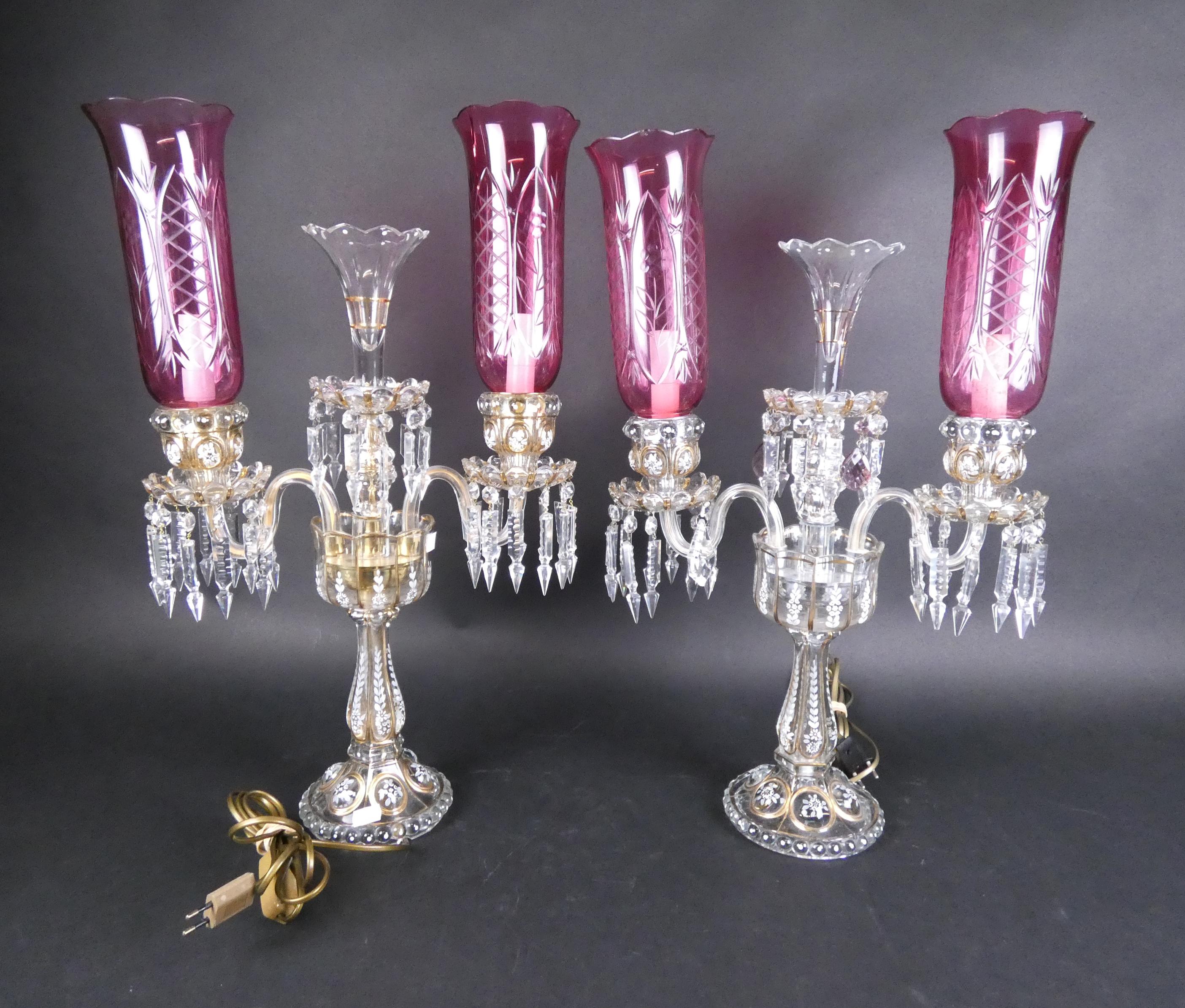 Verrerie: Paire de chandeliers en cristal de Bohême électrifié avec pampilles et