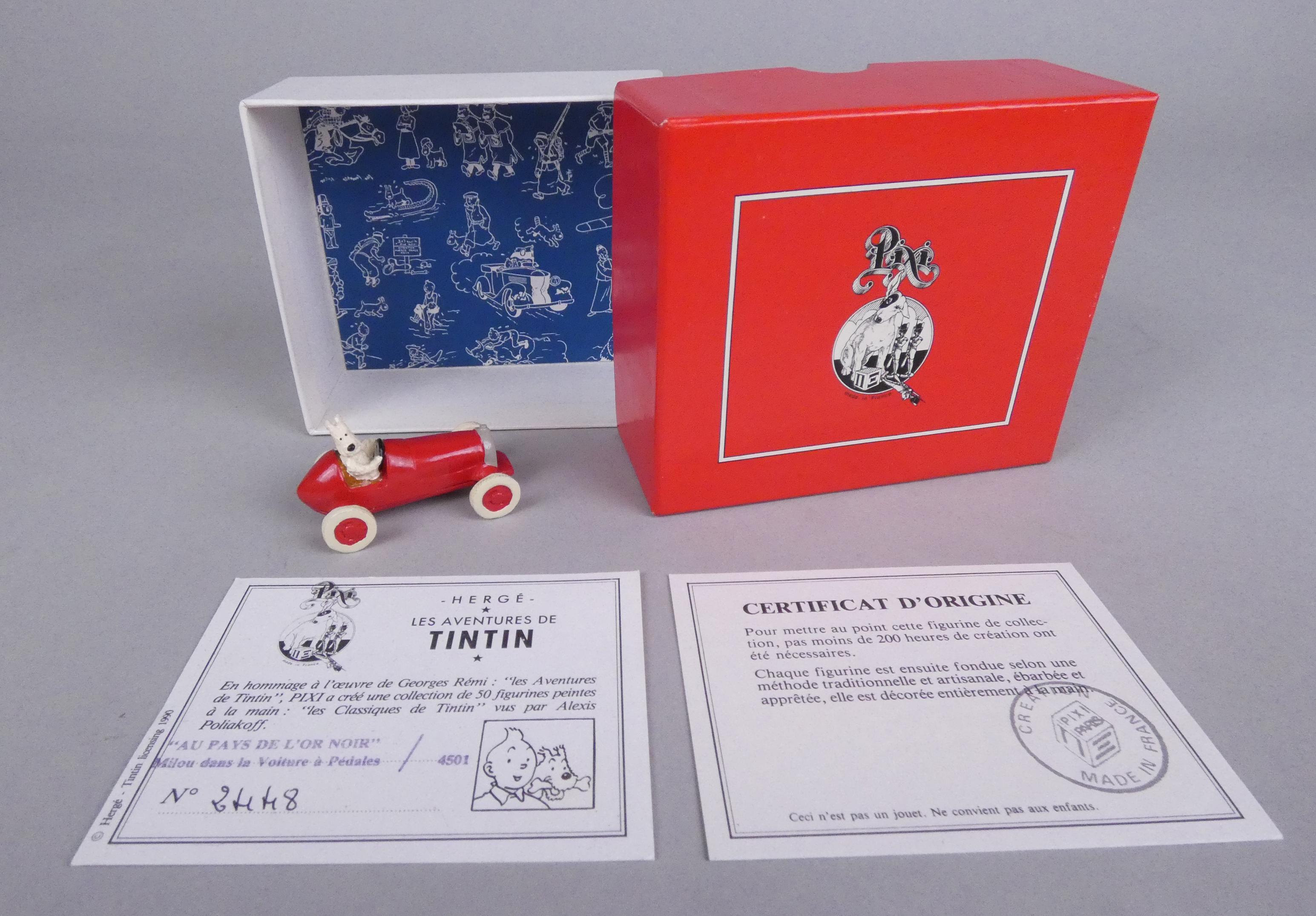 BD: Hergé/Tintin PIXI en plomb référence 4501 -Milou dans la voiture à pédale, Au pays de l'or noir- Tirage 2448/3500 exemplaires L:5cm avec boite et certificat