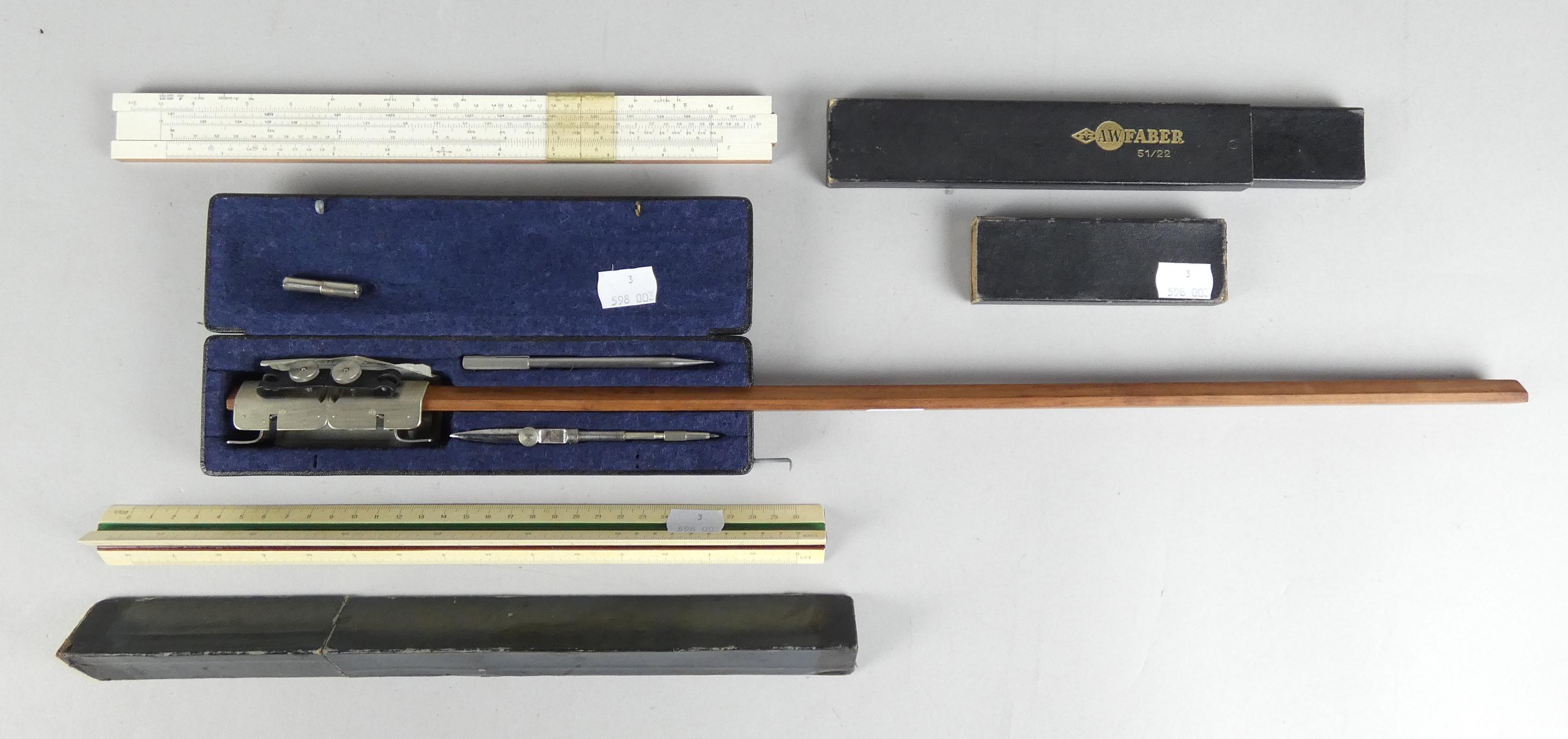 Objet: Compas à verge (charron) E.O. Richter & Co Pracision L: 58cm + 2 lattes A.W. Faber (3pcs)