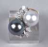 Bijou: Bague en or jaune et blanc 18K sertie de 2 perles Toi et Moi et de diaman