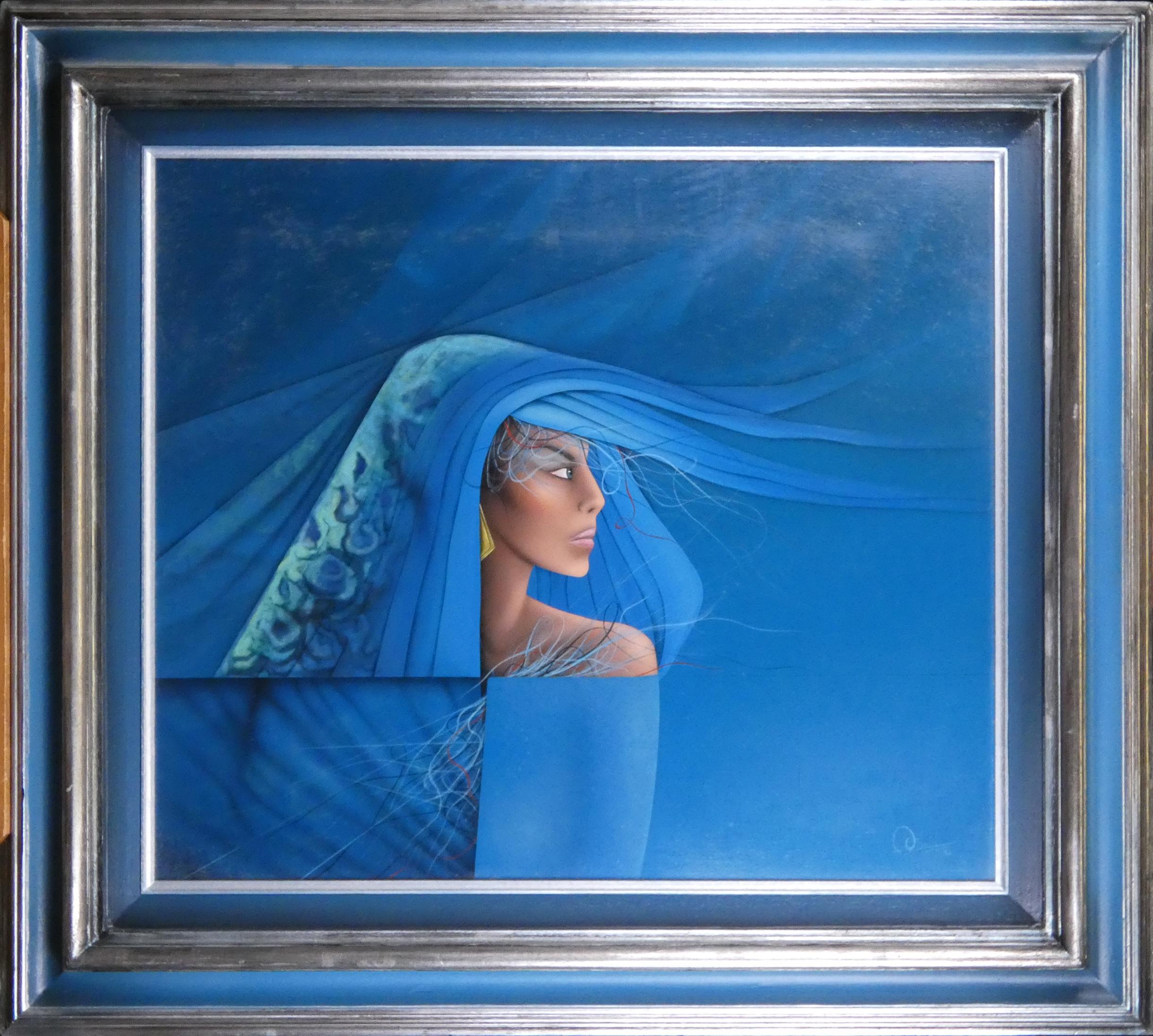Tableau HST (début chanci) -Femme de Profil- signé *TORREKENS A.* (Antoon) (20eS) 60x70cm cadre argenté et bleu