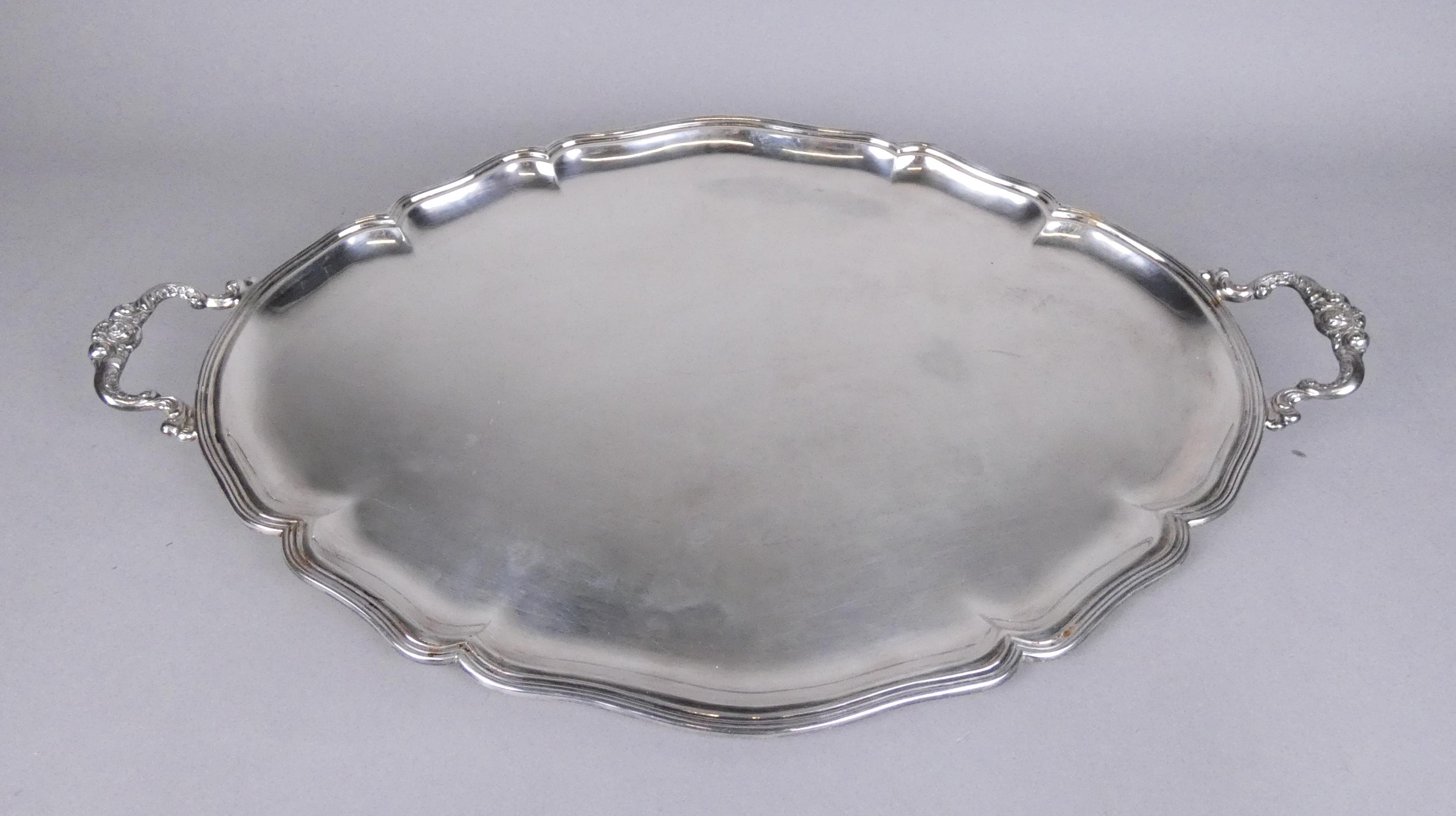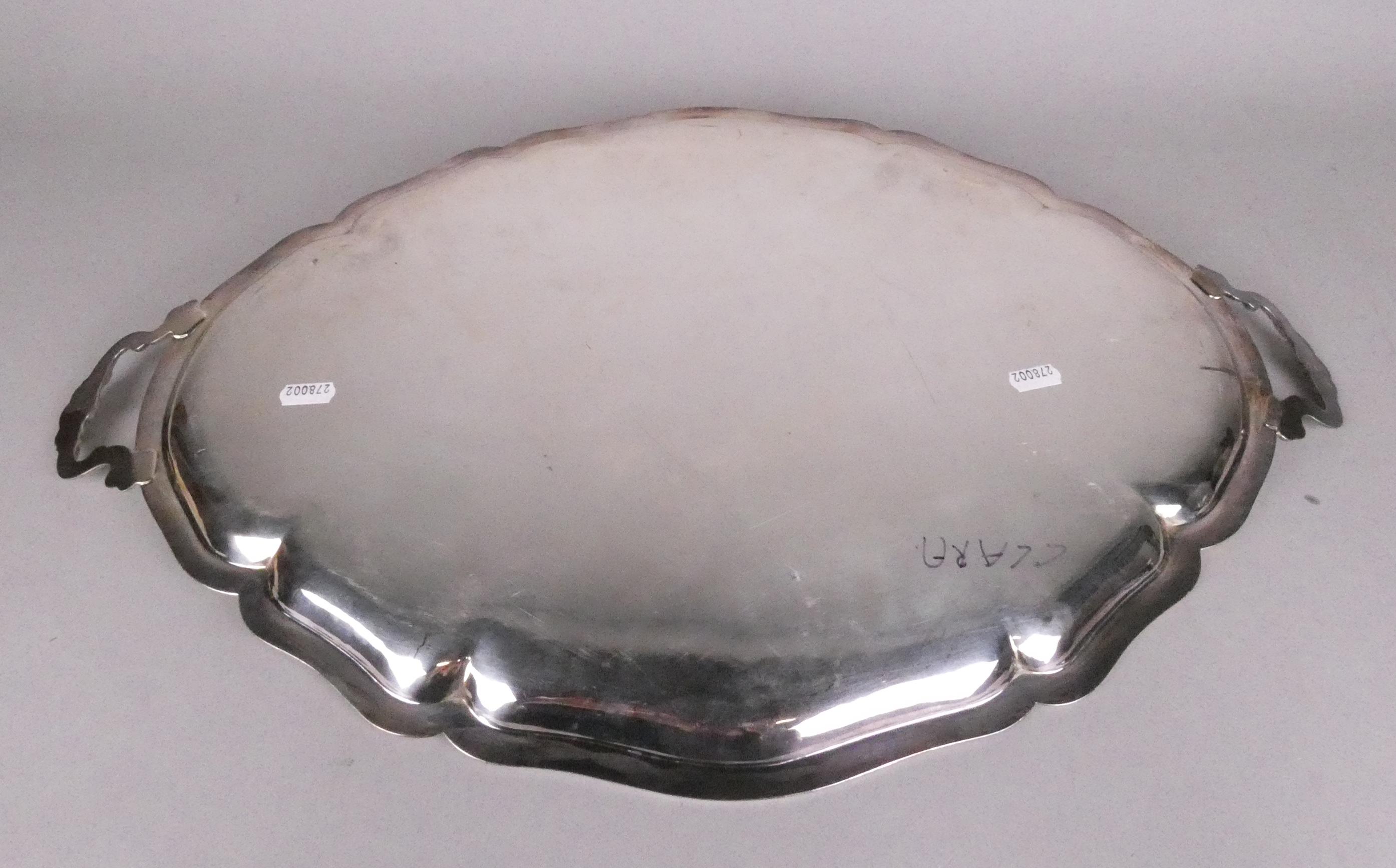 Argenterie: Important plateau en argent (usure d'usage) insculpation 835 -AND ARE EIT- Poids: 1650g
