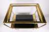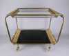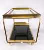 Meuble : Desserte en laiton doré (traces d'usures) et vitres en verre fumé