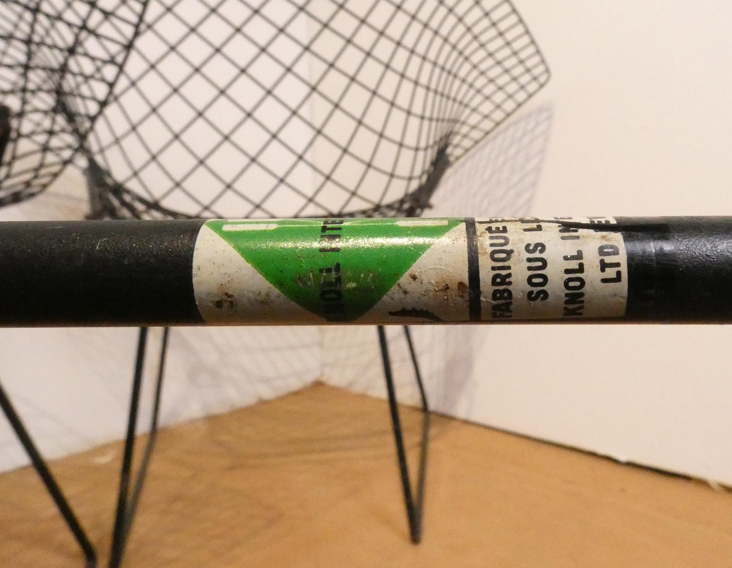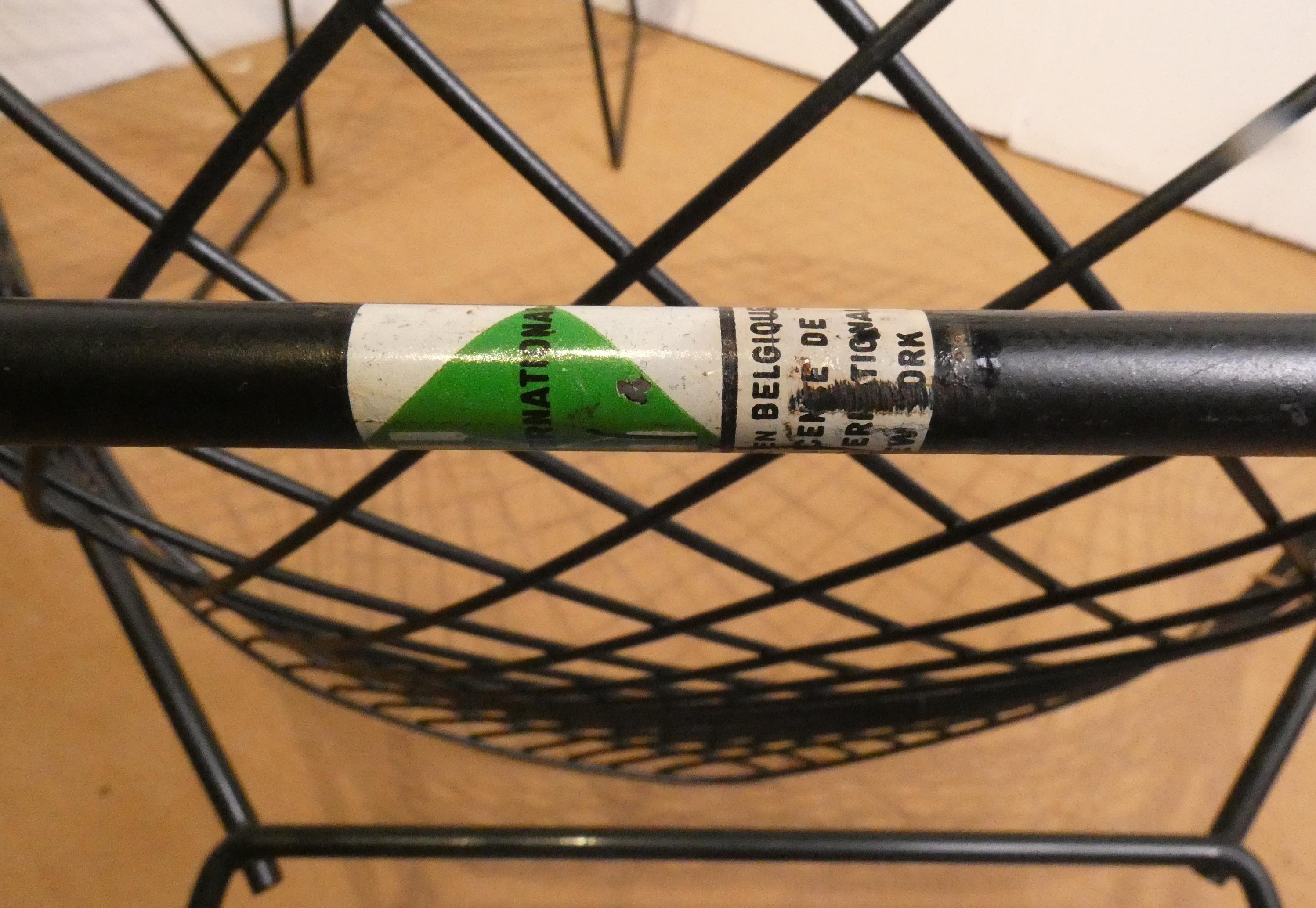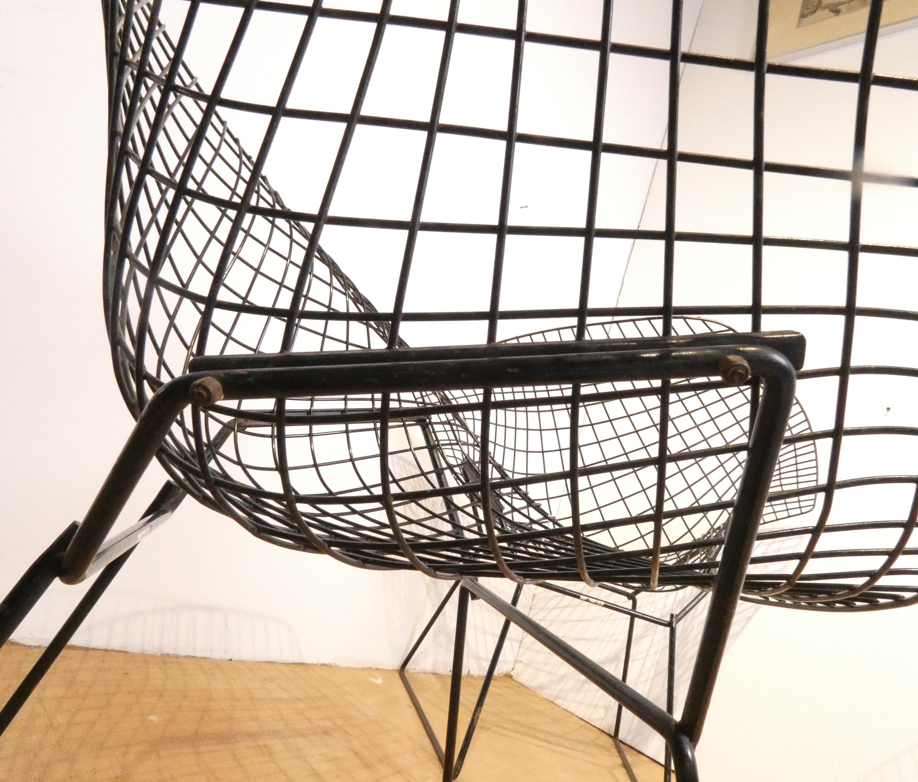 Meuble: 3 fauteuils en acier laqué noir (pt oxy, certaines vis remplacées) modèle -DIAMOND- designer *BERTOIA H.* (Harry) (1915, 1978) étiquette de l'éd. KNOLL INTERNATIONAL 75x85x