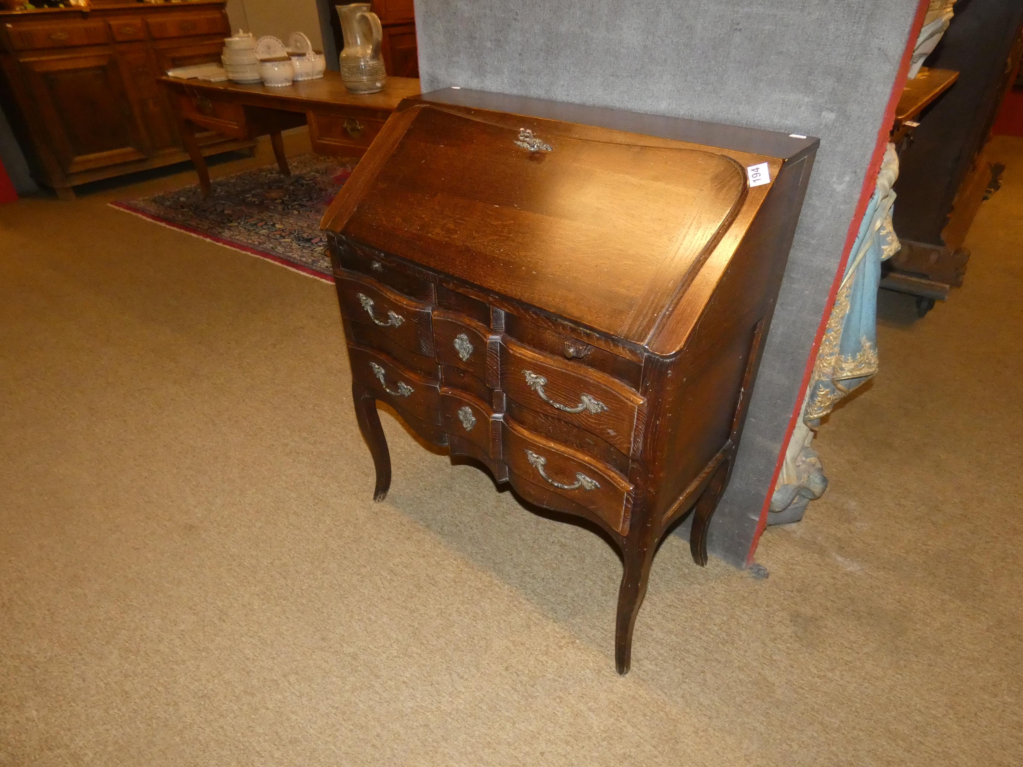 Meuble : Secrétaire à pente galbé de Style Louis XV en chêne fin 19eS début 20eS