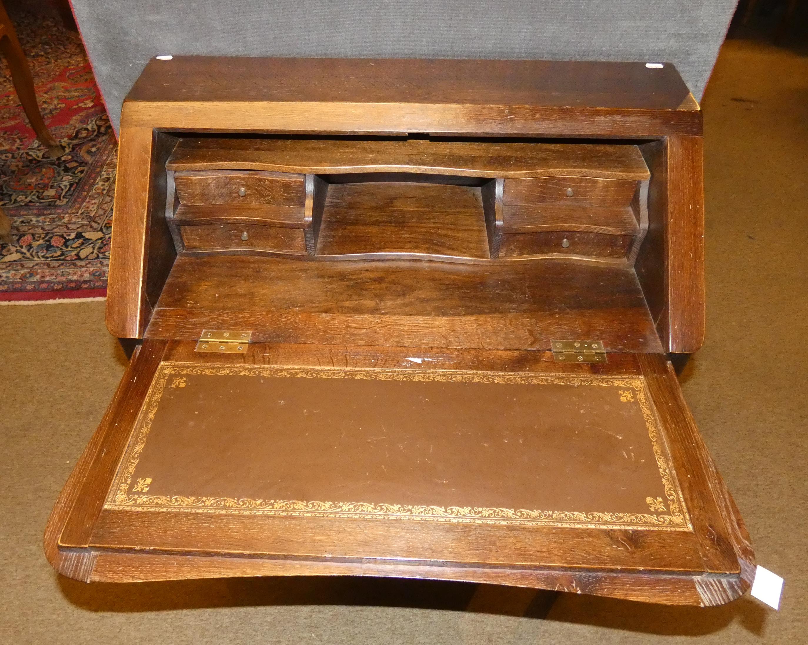 Meuble: Secrétaire à pente galbé de Style Louis XV en chêne fin 19eS début 20eS ouvrant à 2 tiroirs 1 abattant découvrant 2 tiroirs et 2 casiers 100x82x42cm