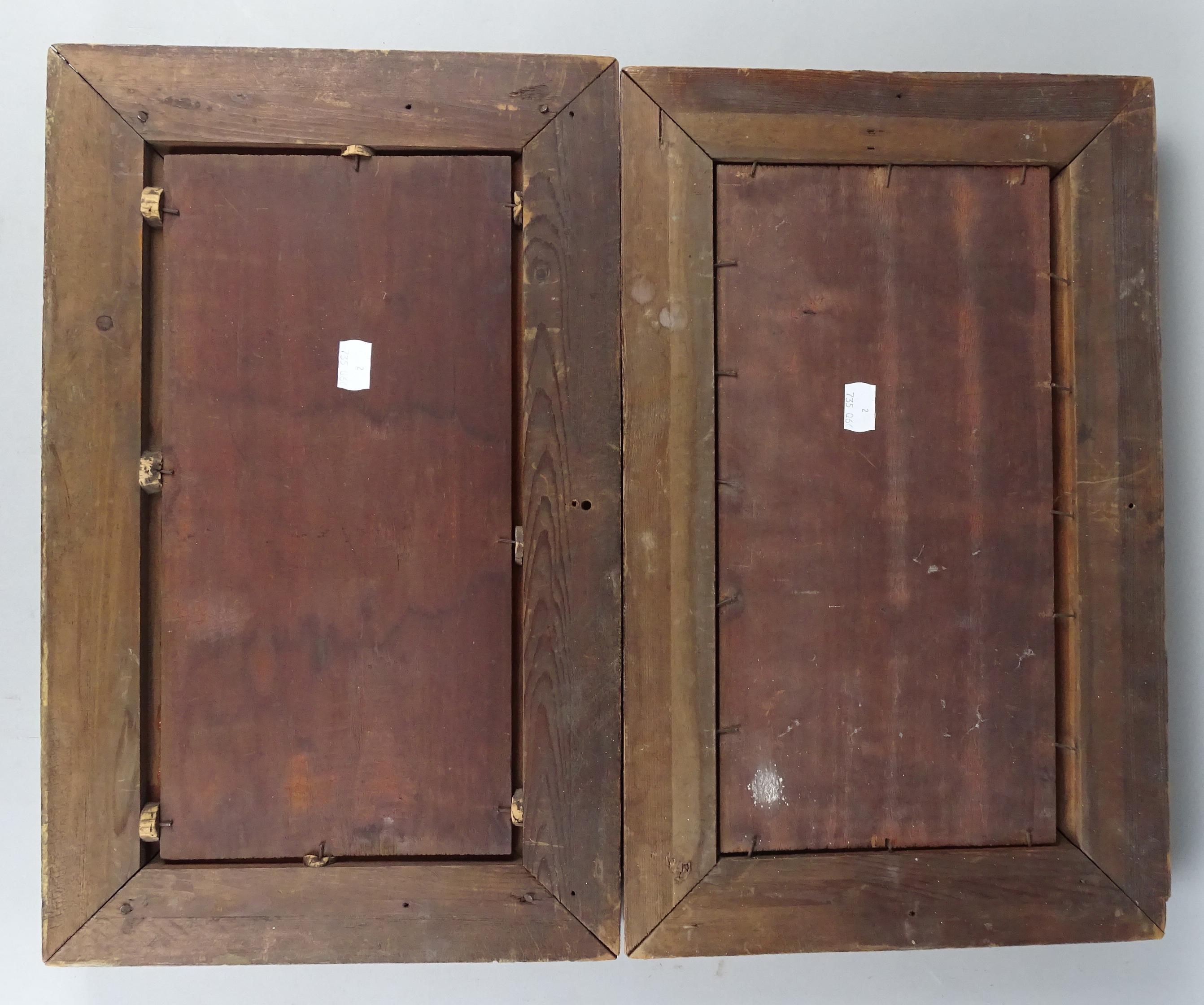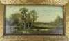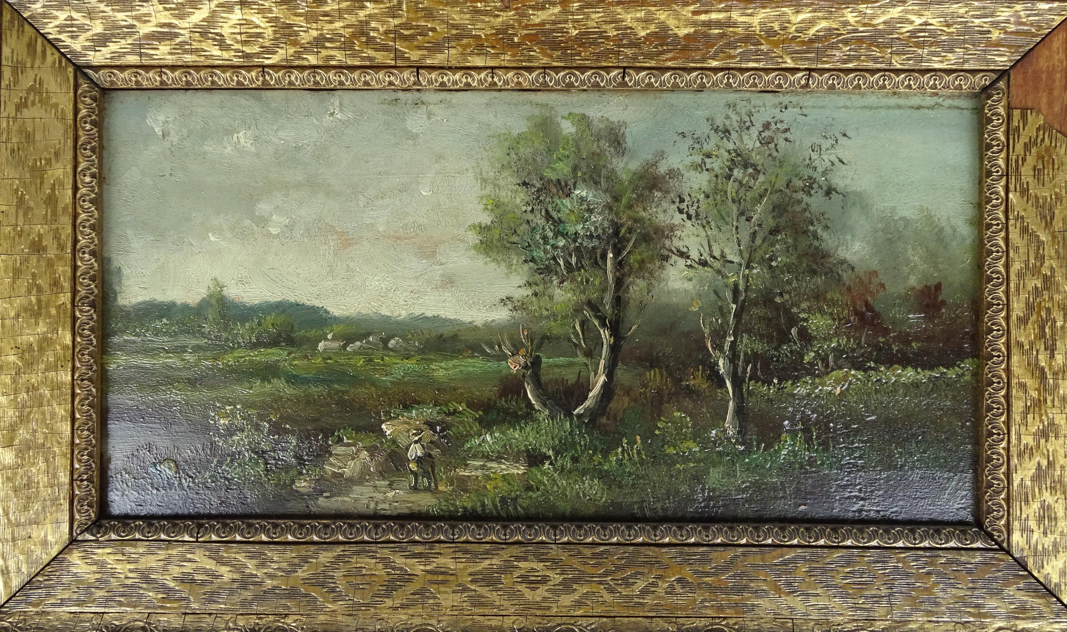 Tableau HSB d'acajou (2pcs) -Paysage animé- anonyme fin 19eS 18x36cm cadre de style doré (lacunes)