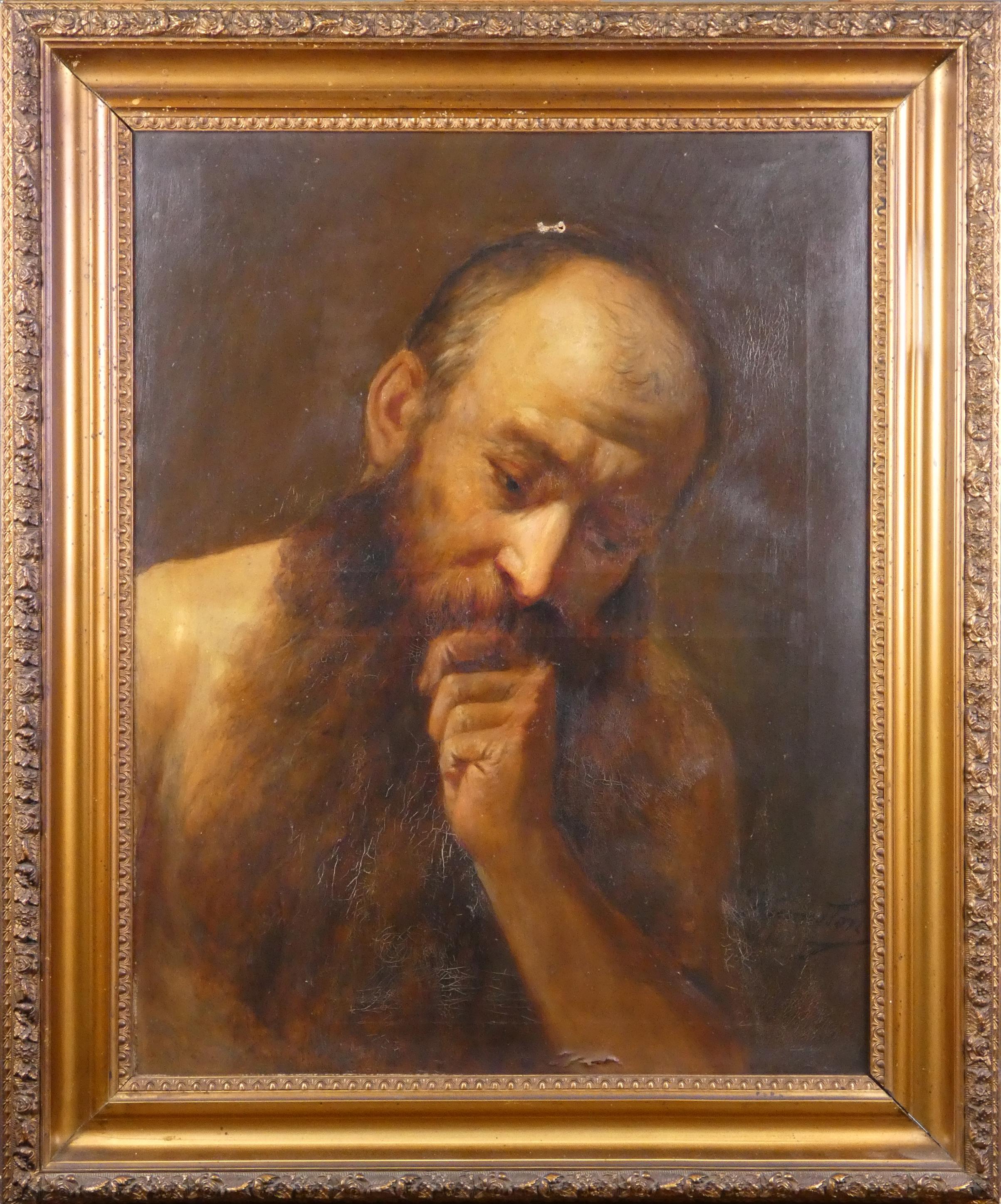 Tableau HST (1 trou, craquelures) -Portrait d'homme- signé *HANNETON H.* (Henri) (1822, 1911) 60x46cm cadre de style doré