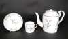 Céramique : théière (1 pt ecl) , 10 tasses et sous - tasses en porcelaine décor au barbeau fin 18eS