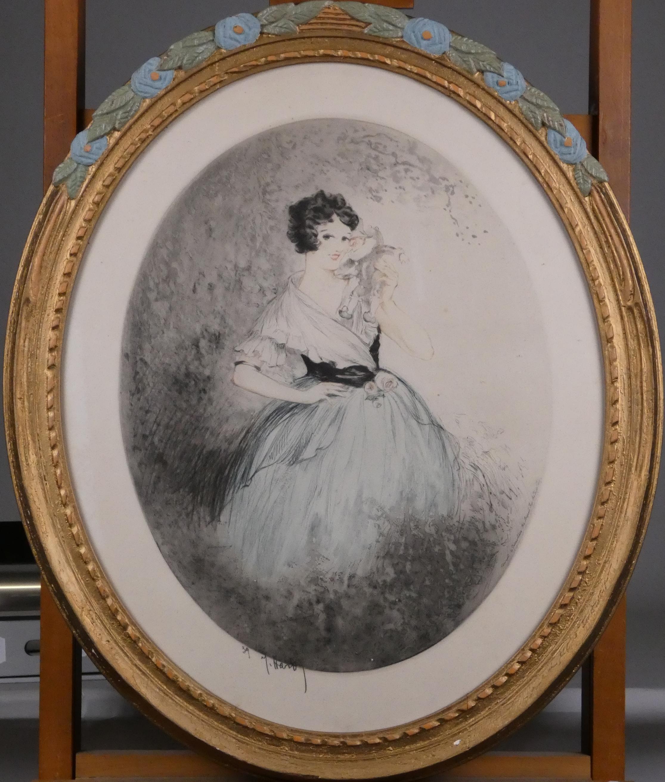 Estampe: Eau-forte -Portrait de femme- n° 39 signé *HARDY J.* (Jean) (1880, ?) 46x36cm cadre doré