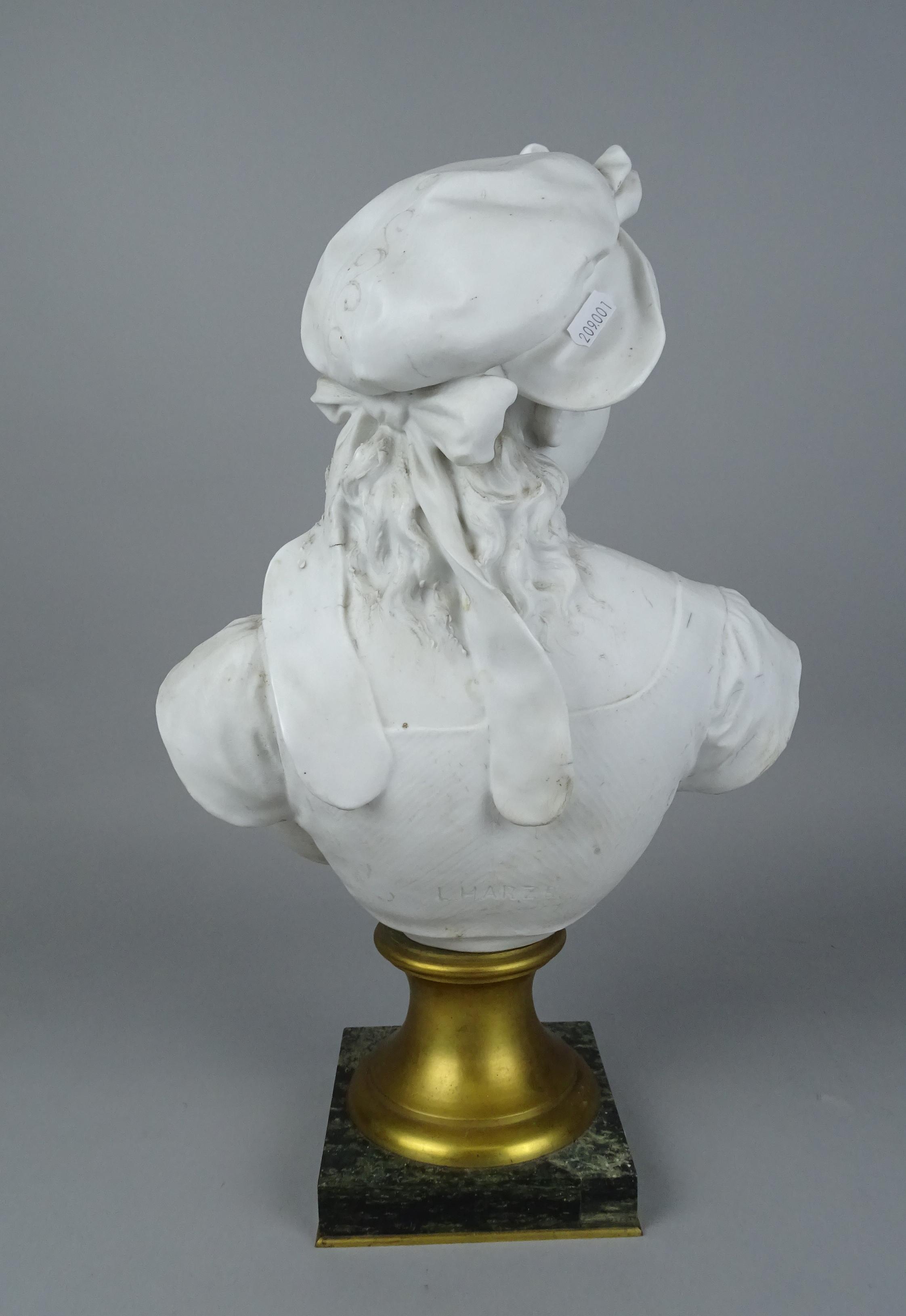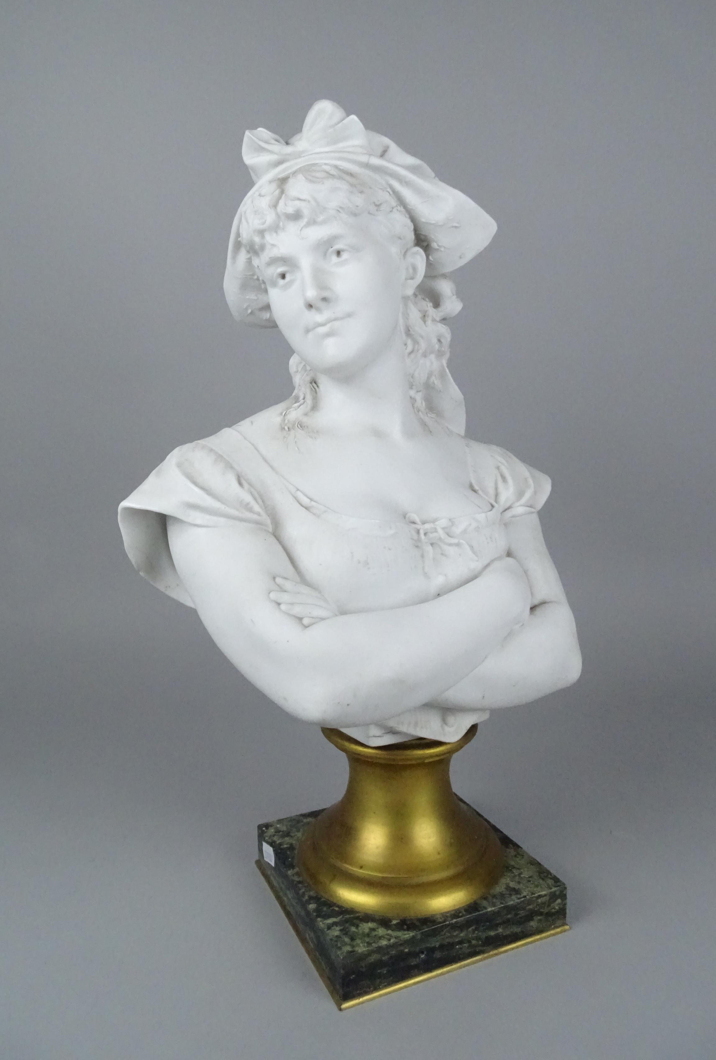 Sculpture: Buste en biscuit -Dorine- signé *HARZE L.* (Léopold) (1831, 1893) H:40cm socle en bronze et marbre (fel) H:13cm