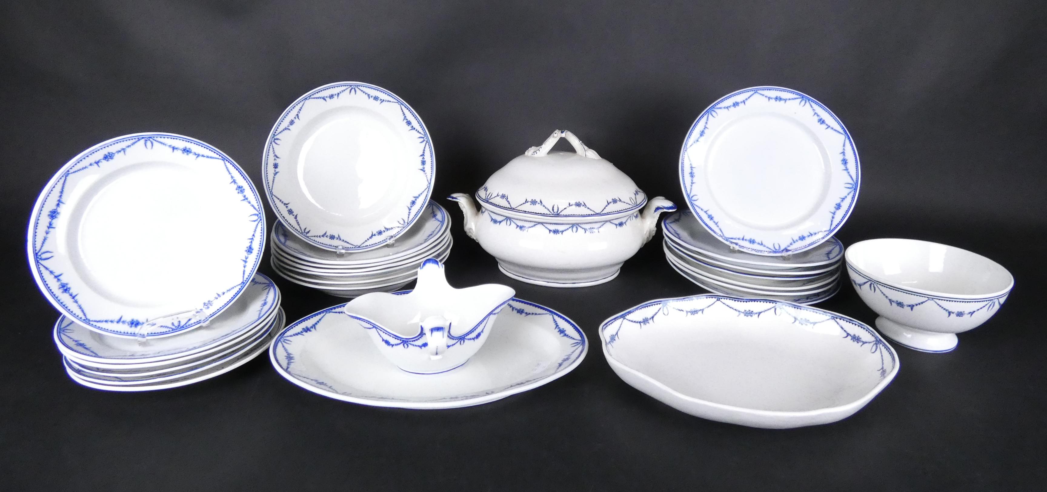 Céramique: Porcelaine de Tournai décor à la guirlande (25pcs) dont: légumier, bol, saucière, plats et assiettes