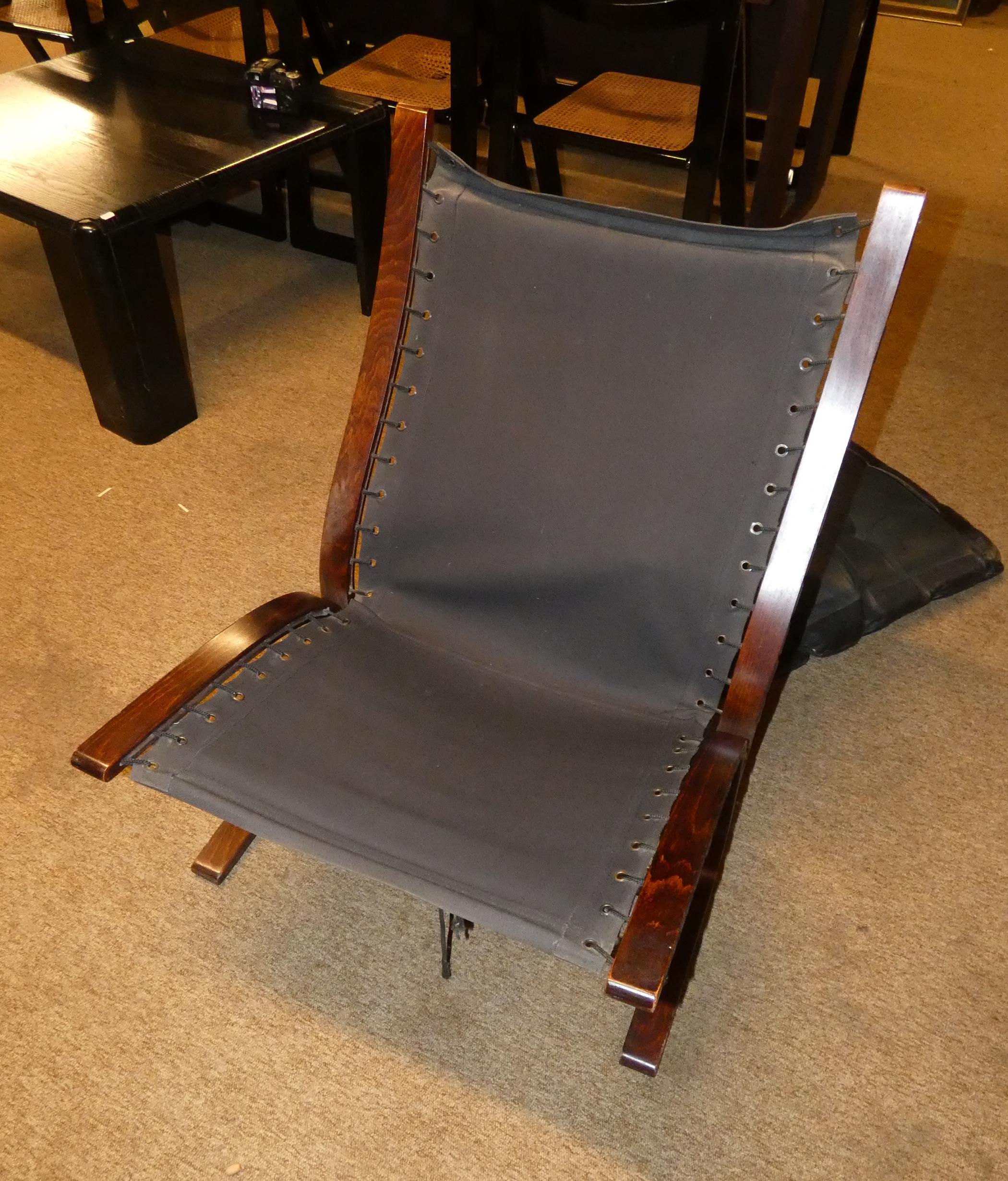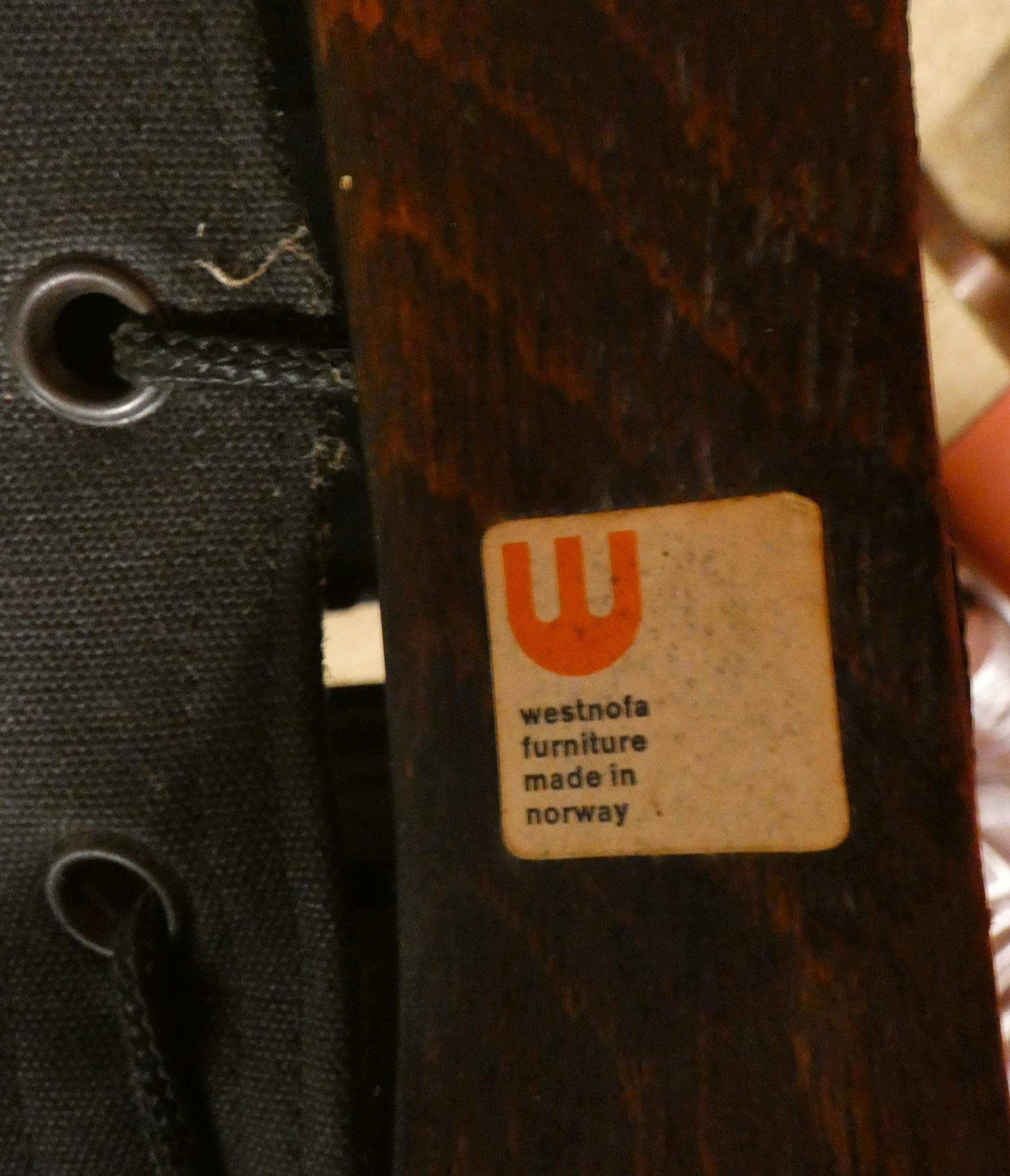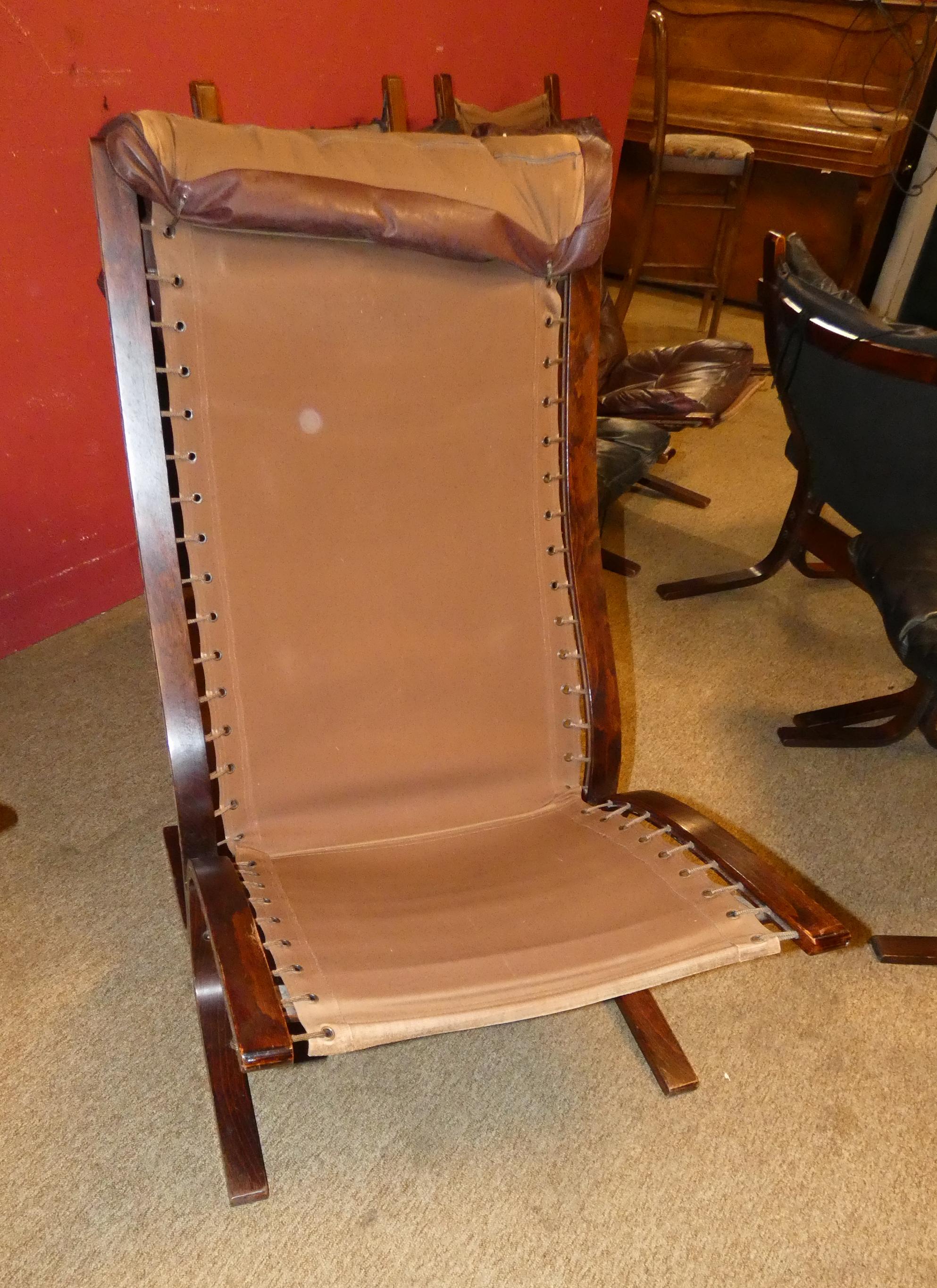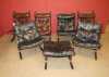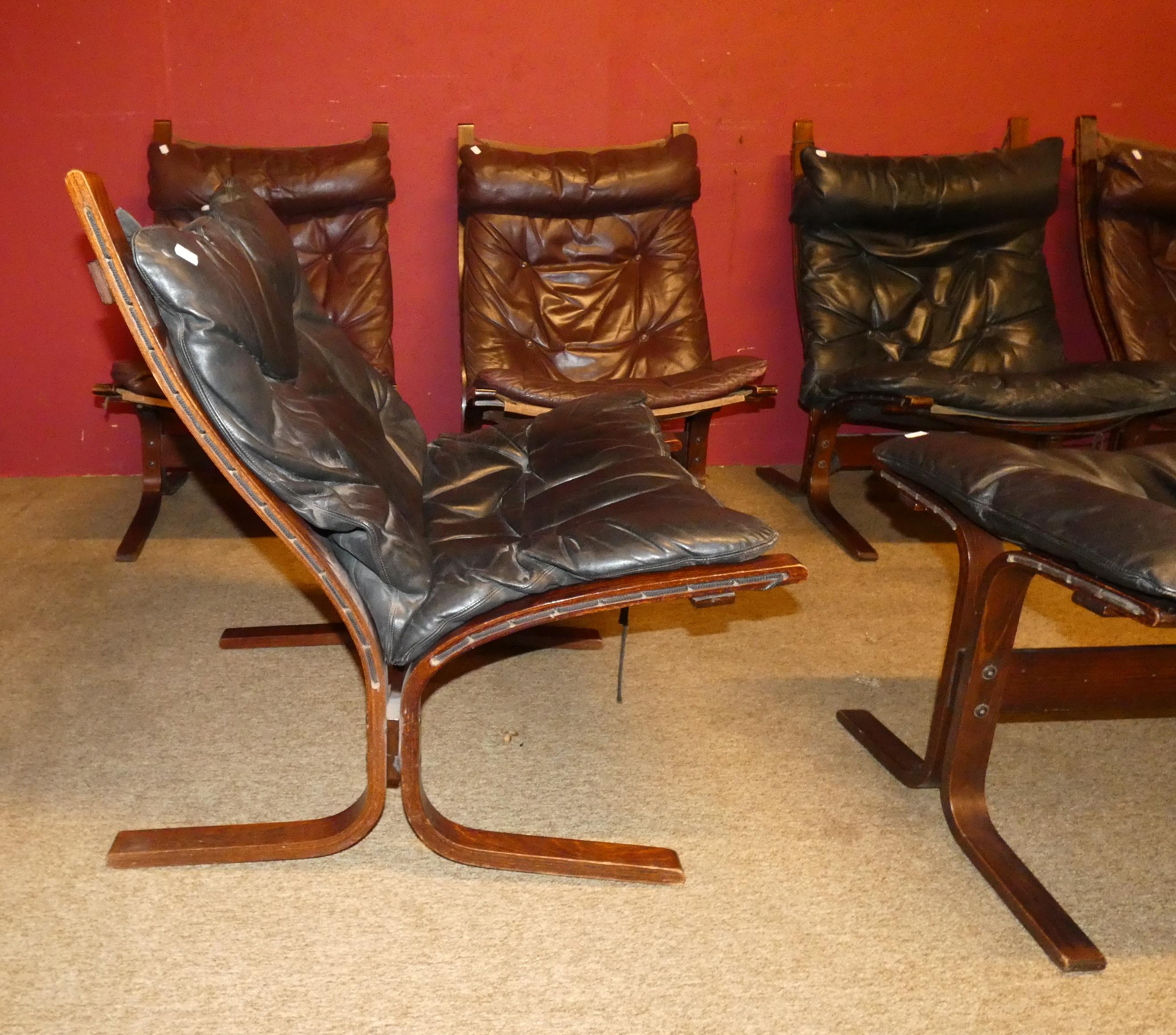 Meuble: Salon -SIESTA- en hêtre et cuir (7pcs) (usure d'usage) circa 1965 designer *RELLING I.* (Ingmar) (1920, 2002) étiquette éd WESTNOFA: 4 FTL, 2 chauffeuses, ottomane