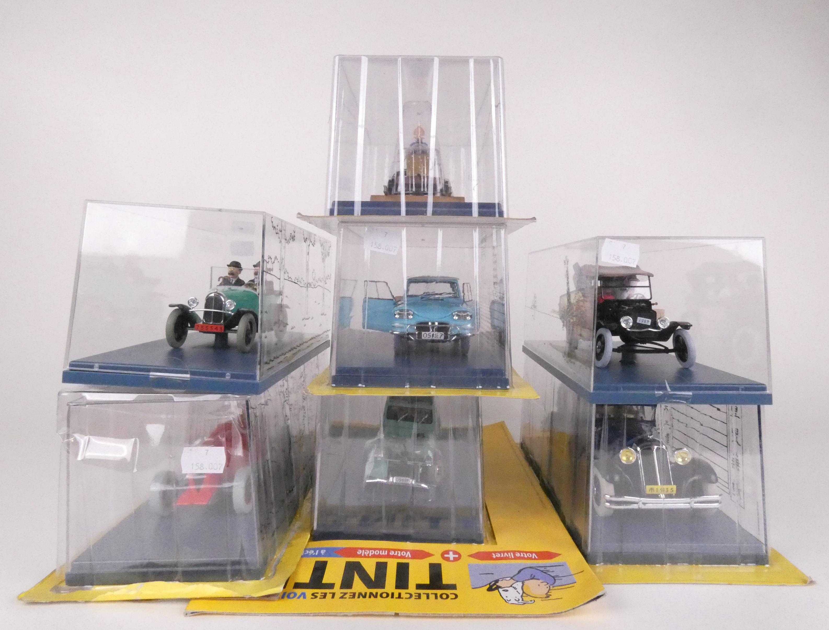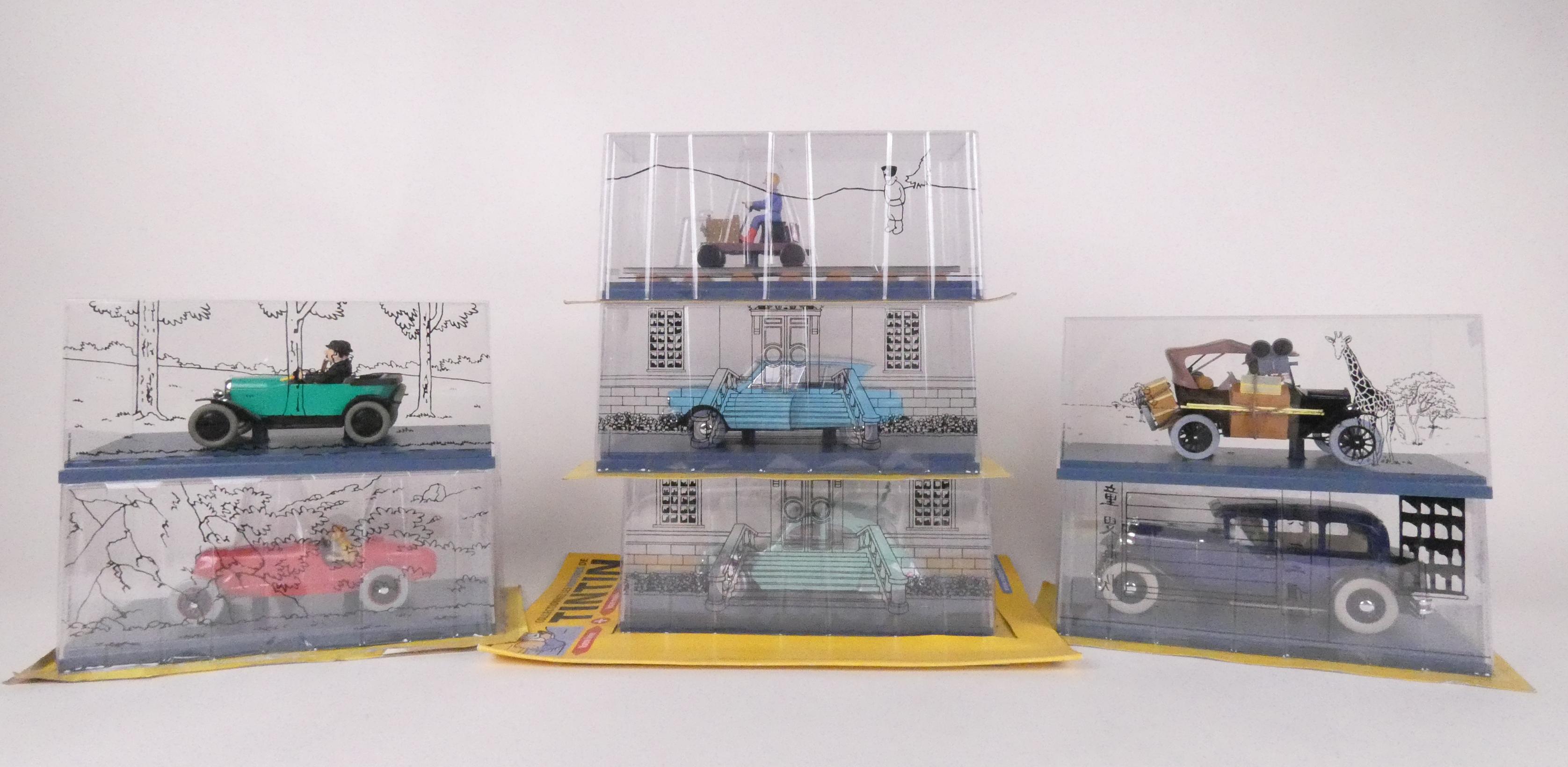 BD : Les Voitures de TINTIN 1/24e , HERGE éd Moulinsart (7pcs) 3 scellées par blister d'origine dont 1 (2cv) entière avec son fascicule...