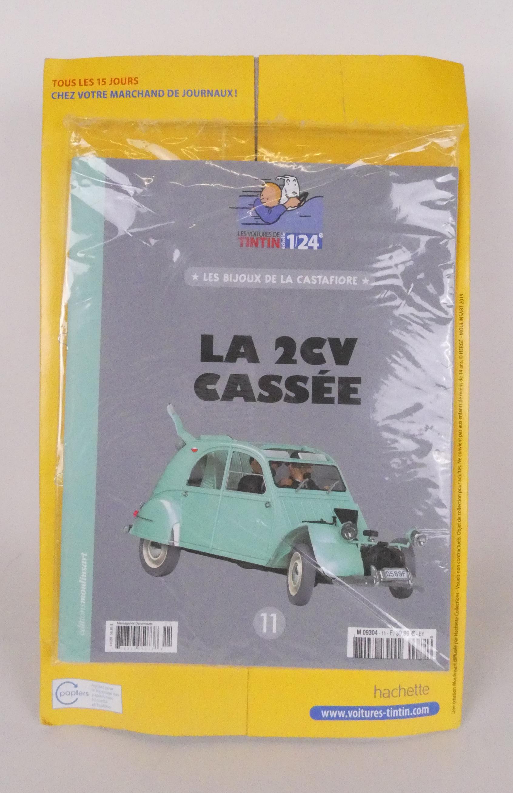BD: Les Voitures de TINTIN 1/24e, HERGE éd Moulinsart (7pcs) 3 scellées par blister d'origine dont 1 (2cv) entière avec son fascicule...