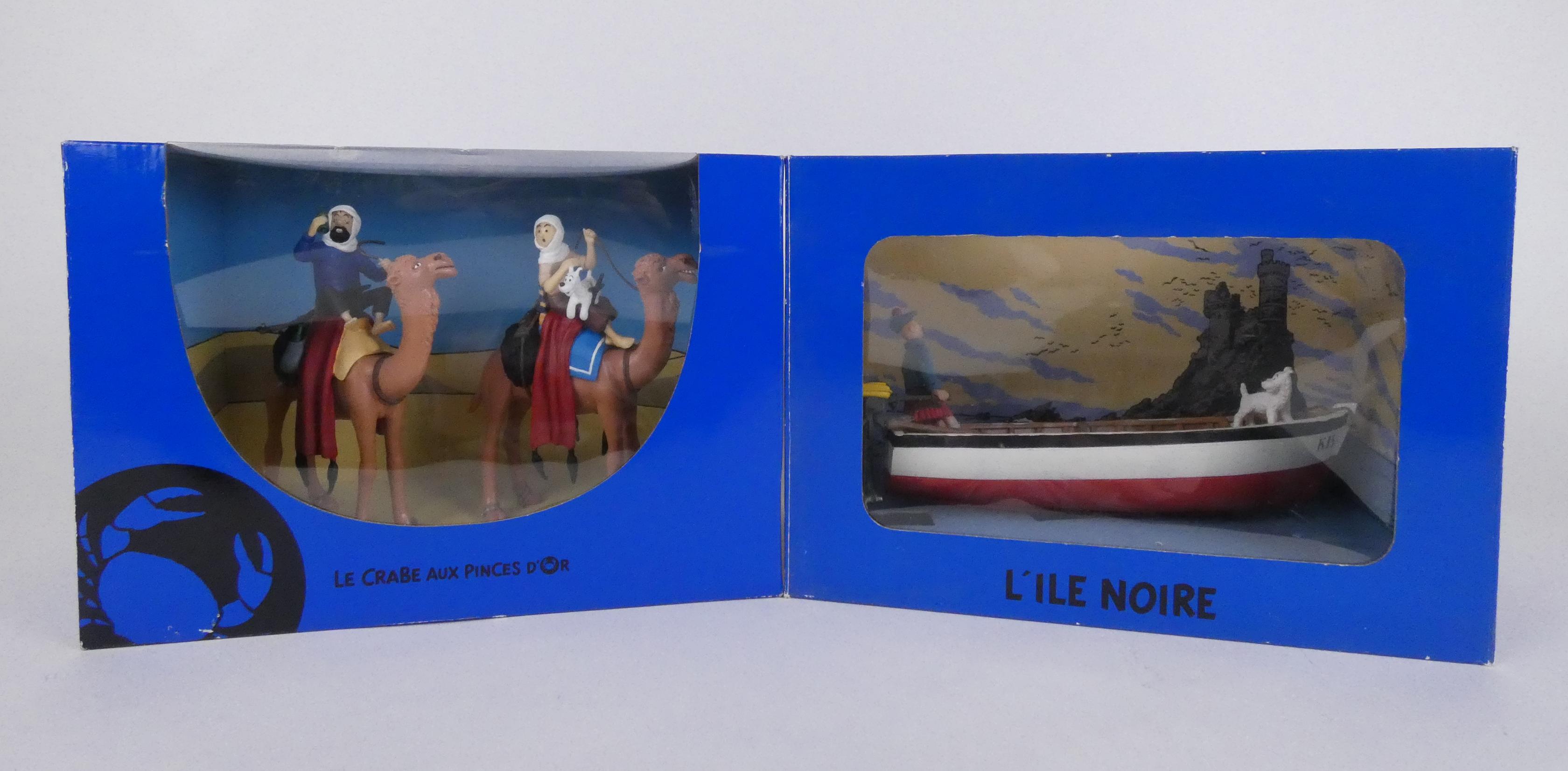BD: Figurines Tintin (2pcs) -Tintin en écosse- -Tintin, Haddock et les dromadaires- HERGE éd Moulinsart dans leur boite d'origine