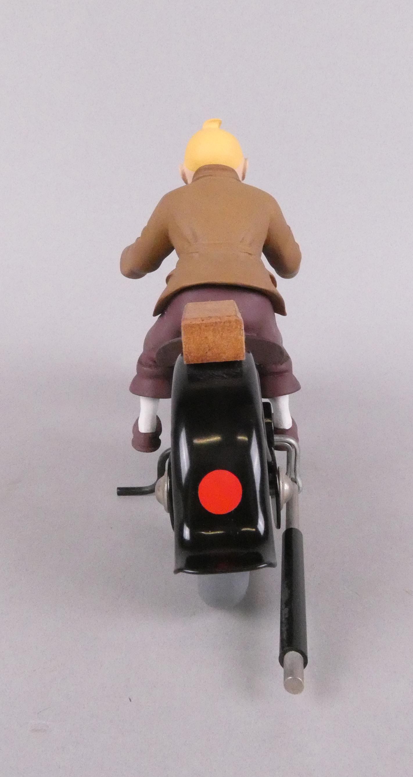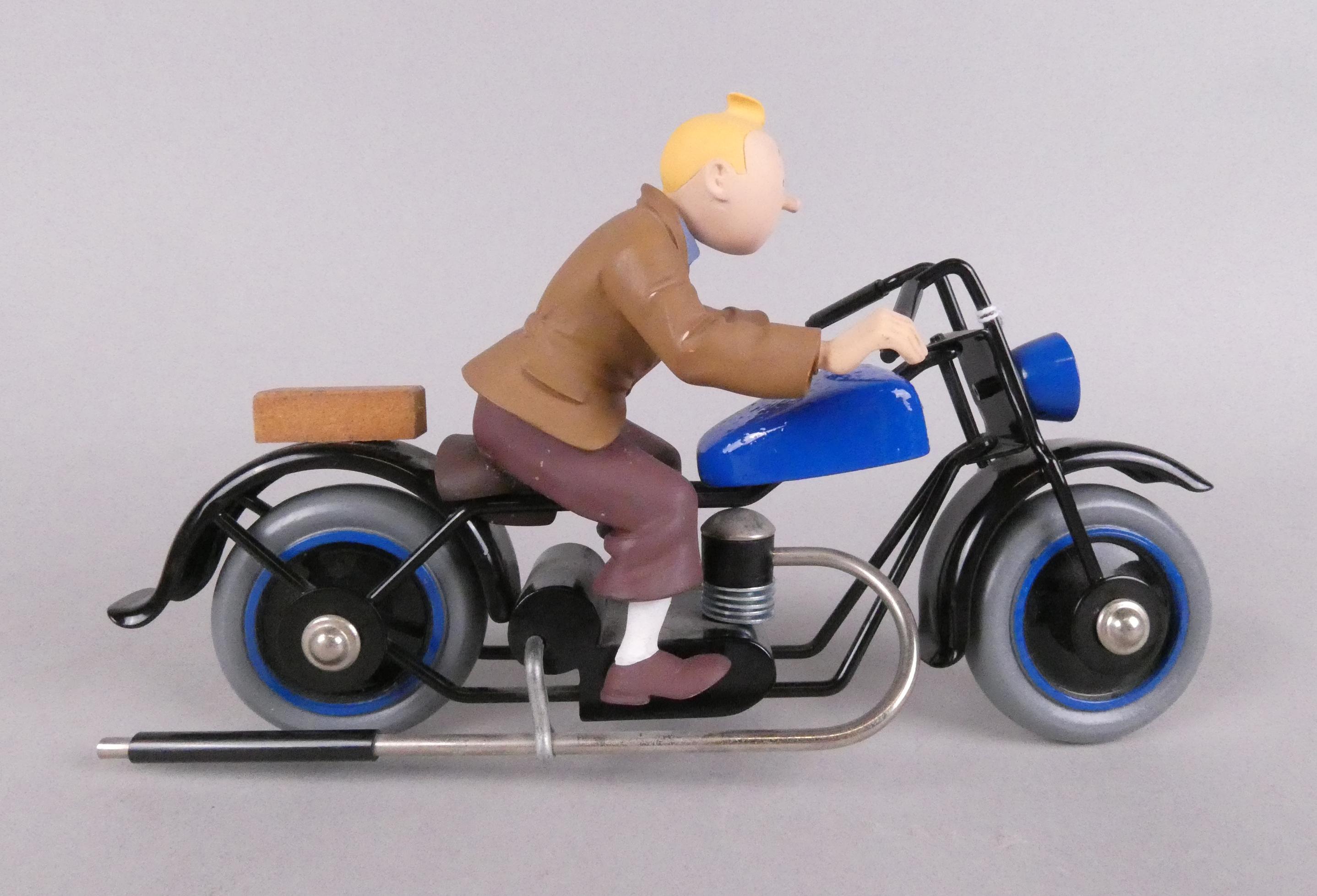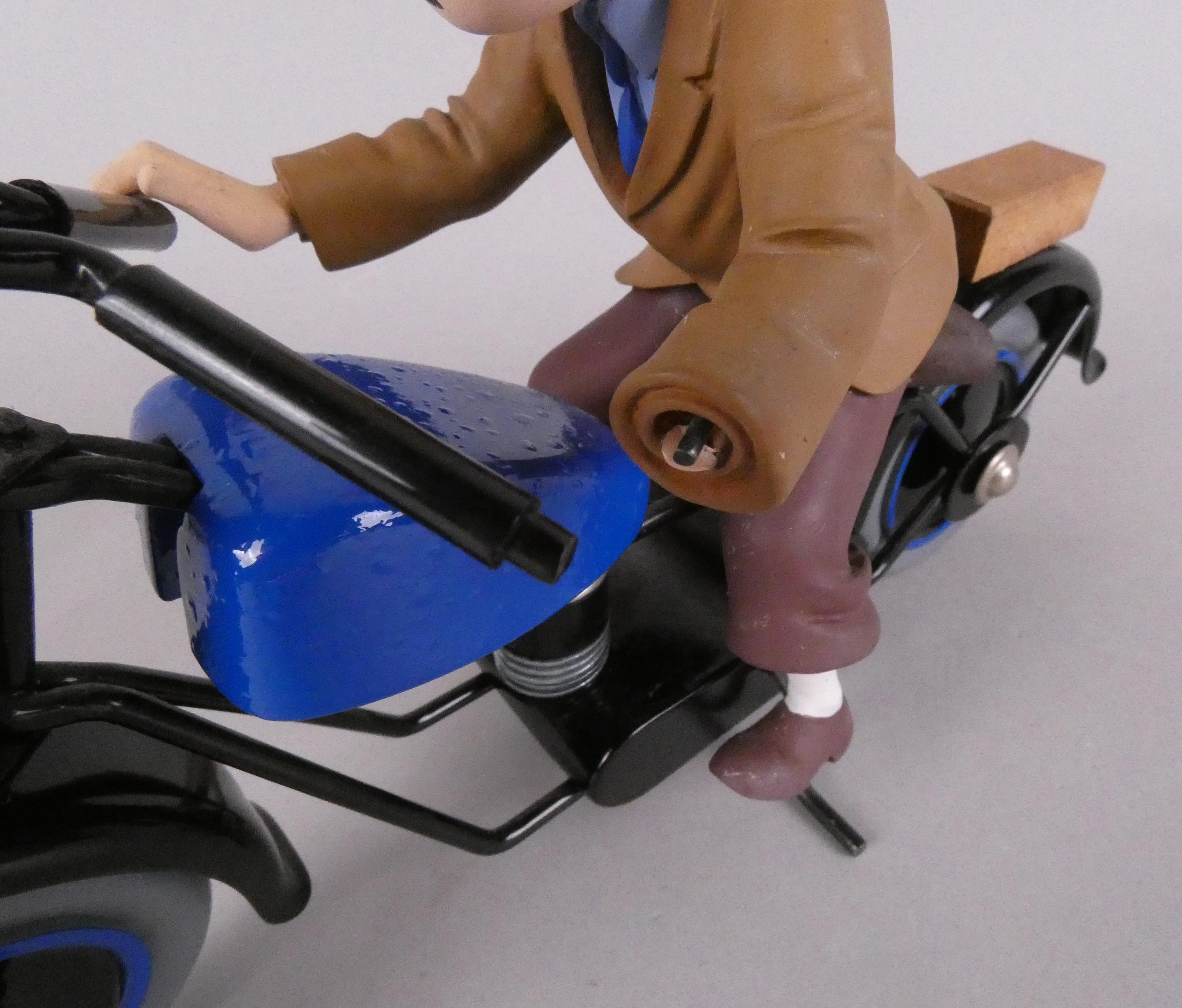 BD : Figurine Herge TINTIN en bois , métal et résine (mq une main) - La moto Bleue - attribué à AROUTCHEFF